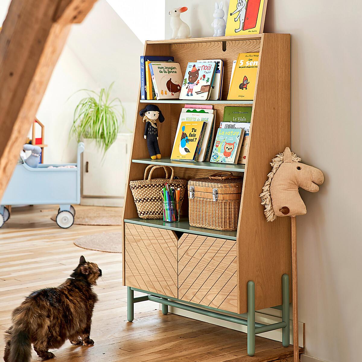 Light wood herringbone pattern, easy storage: The Waldo furniture is perfect for a child's bedroom. The shelves and compartments will let your little one store all their books and toys. Designed by La Redoute Intérieurs. Product Details • 3 shelves and 2 doors • In oak veneered MDF with grooved finish and lacquered MDF with acrylic finish • Base in solid rubberwood, acrylic lacquered (water-based paint without solvent)Dimensions. Overall • Width: 79.6cm • Height: 127.5 cm • Depth: 30cm • Height of legs: 17.5cm. Usable dimensions • Upper shelf:L72 x H25.4 x D18.3 cm • Centre shelf :L72 x H25.4 x D23.3 cm • Low shelf: L72 x H25.4 x D28.3 cm • Compartment behind door:L35.4 x H27.6 x D26.8 cm Delivery:Assembly required. Available for home delivery. Note! Please check that all access points are large enough to accommodate your delivery (doors, stairs, lifts). Dimensions and weight of parcel1 parcel • L120 x H8 x D61.2 cm. 21kg