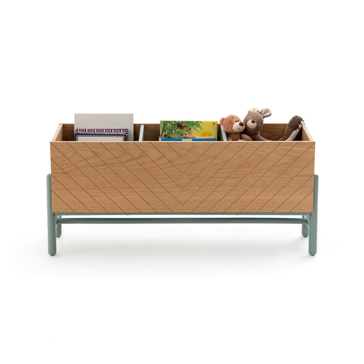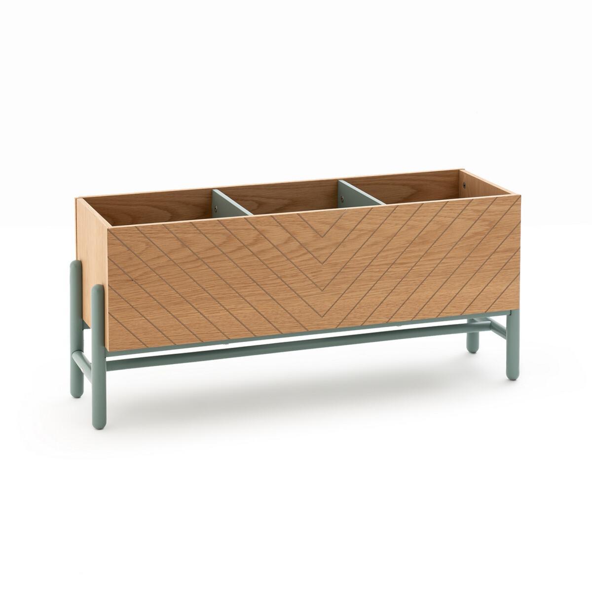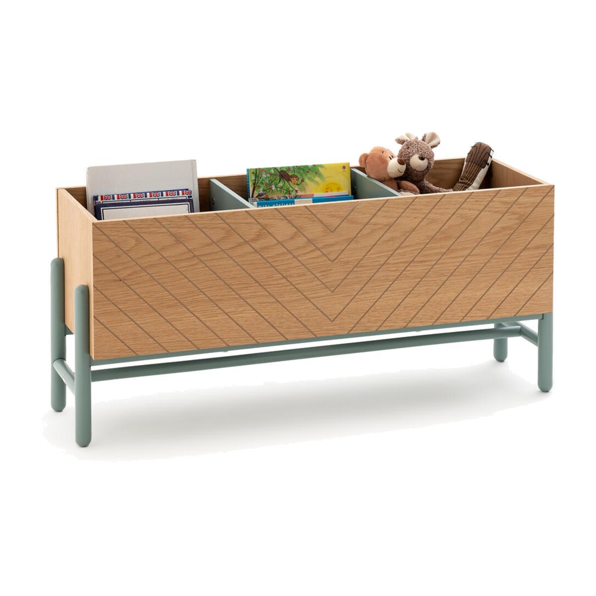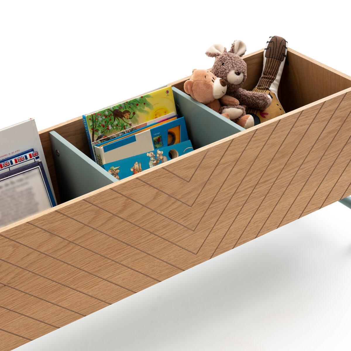Light wood herringbone pattern, easy storage: The Waldo furniture is perfect for a child's bedroom. Very practical, this open storage with 3 compartments is ideal for storing books and toys. Beautifully designed.