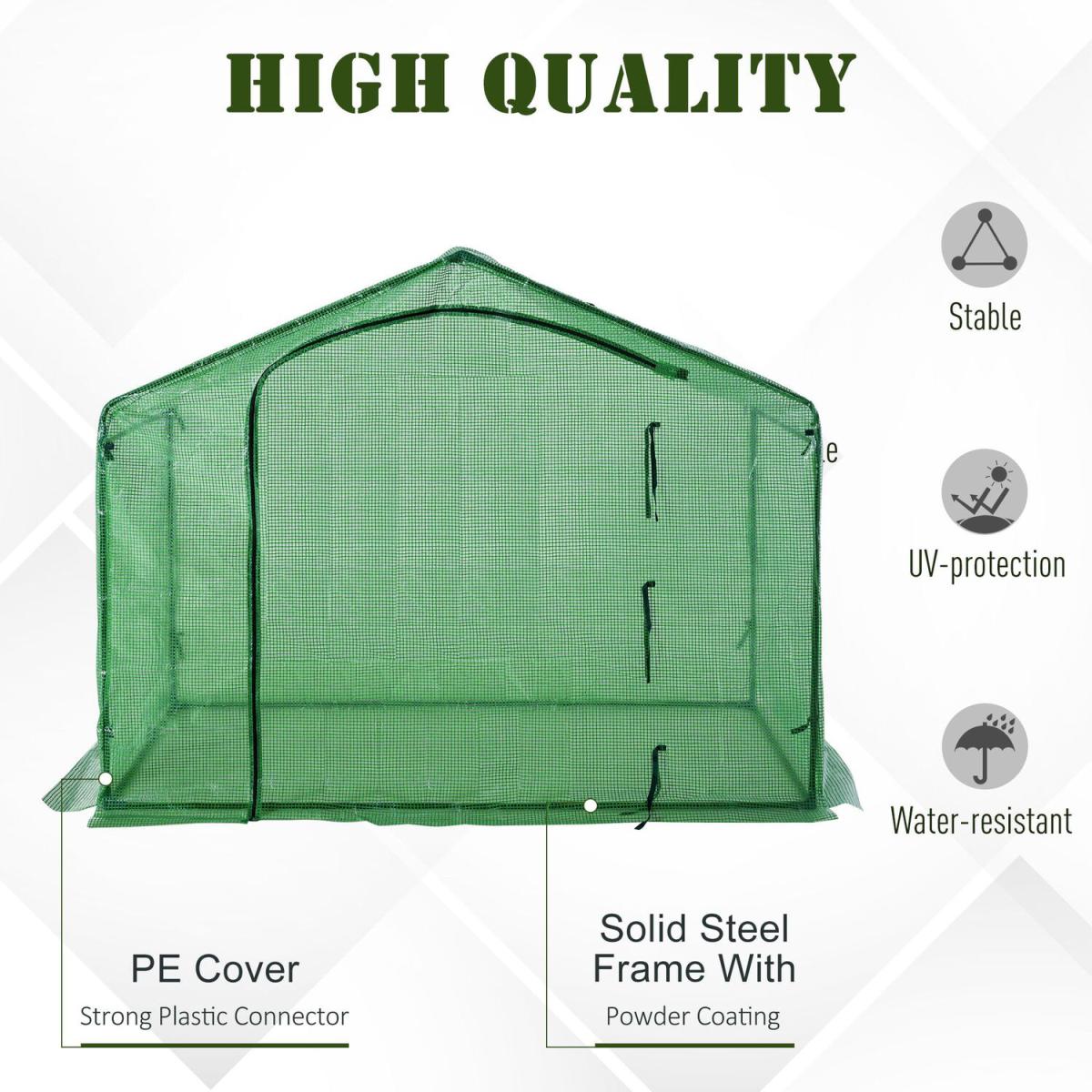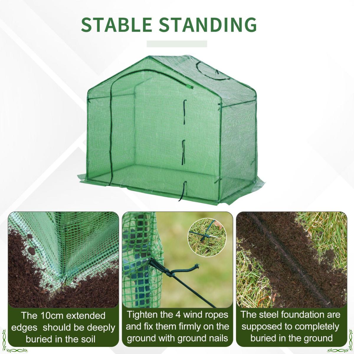 Extend your seeding and growing season with this walk-in greenhouse from Outsunny. The greenhouse allows a head start for growing your plants helping them survive abuse from various seasons. The steel frame is durable, maintenance fee and rust-resistant allowing peace of mind and concentrate on your plants. The screen ventilation helps air allowing and reduce the internal temperature on warm days and offer moisture control. Reduce the risk of losing plants after relocation to an outdoor environment.