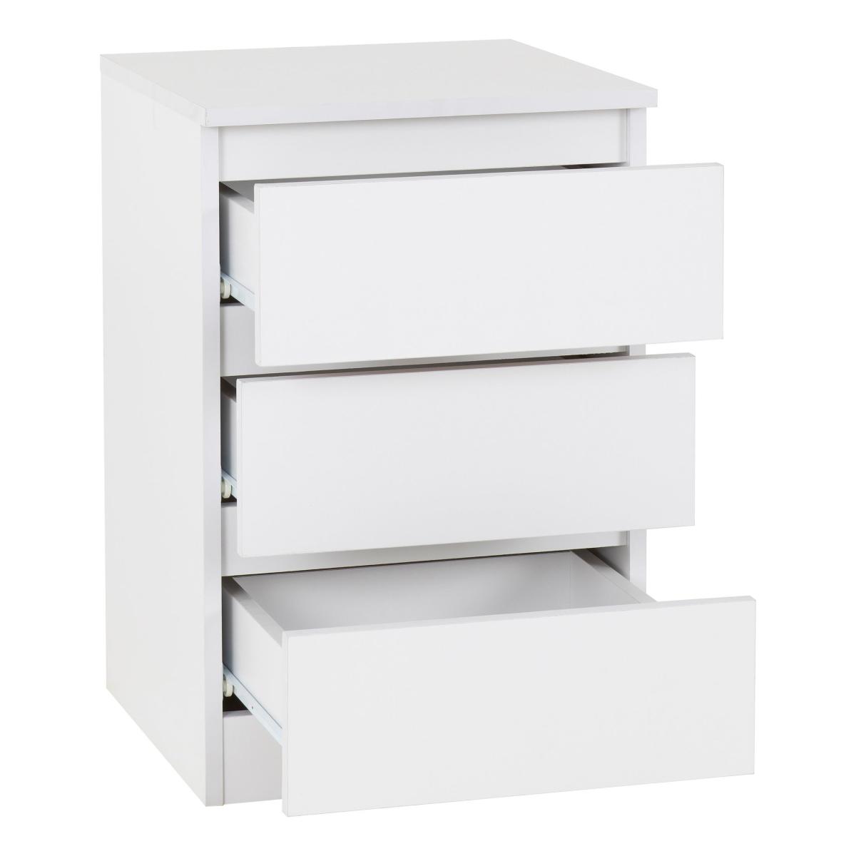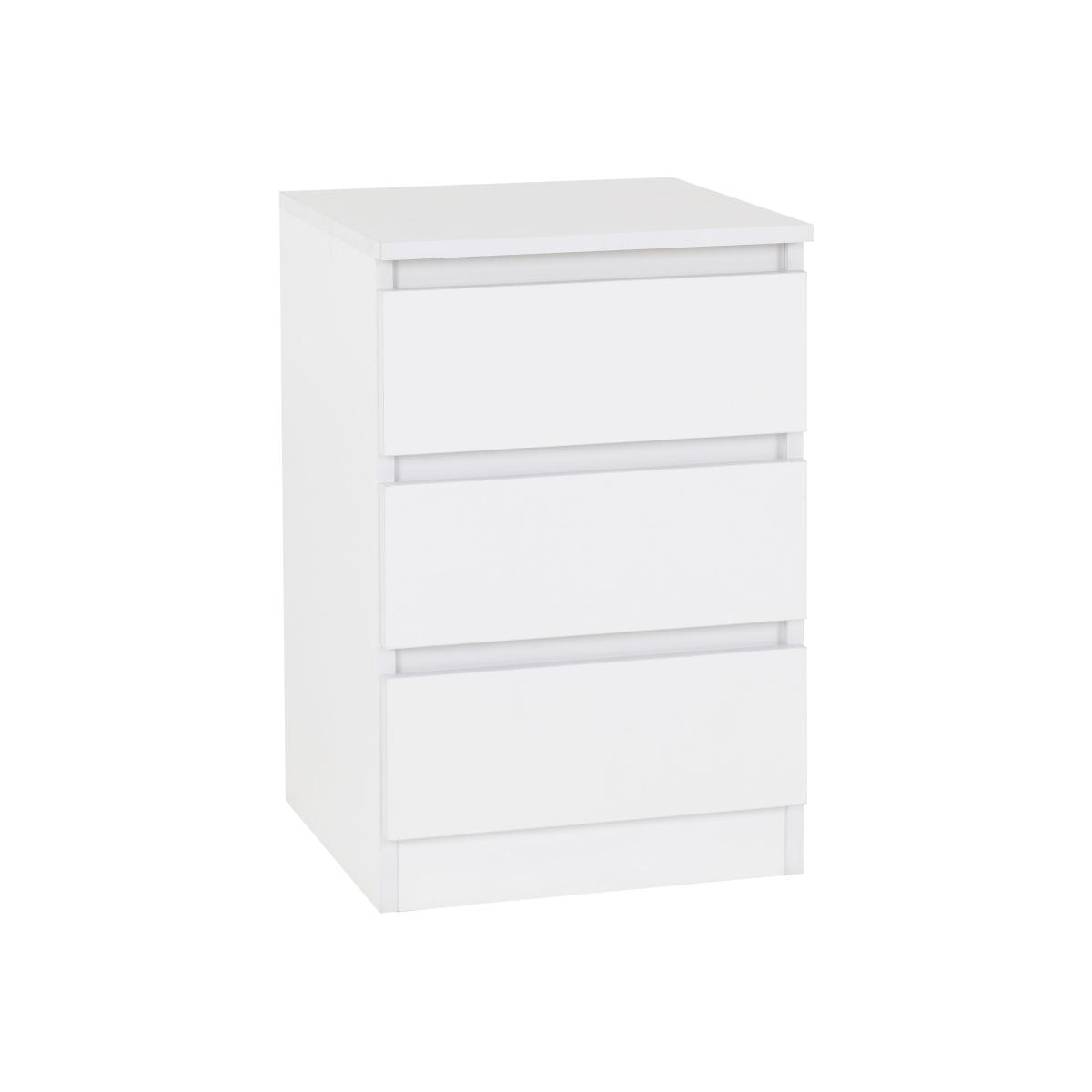 * 3 spacious drawers* Available in multiple wooden finishes* Quick assembly Available in a variety of finishes to complement your interior, this bedside table combines contemporary design with practical storage solutions. Featuring three spacious drawers, it provides ample space for keeping essentials close at hand while maintaining a clutter-free environment. The sturdy construction ensures durability, while the sleek and minimalist design adds a touch of modern elegance to your bedside.