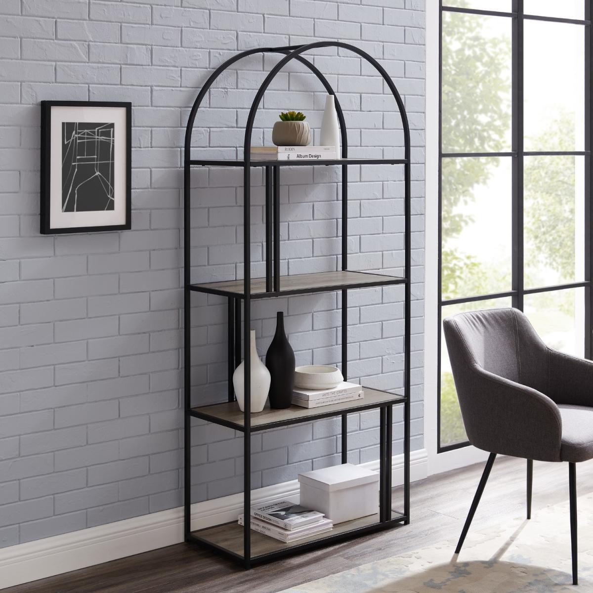 Walker Edison 68 Arched Frame 4-Shelf Bookshelf - Grey Wash