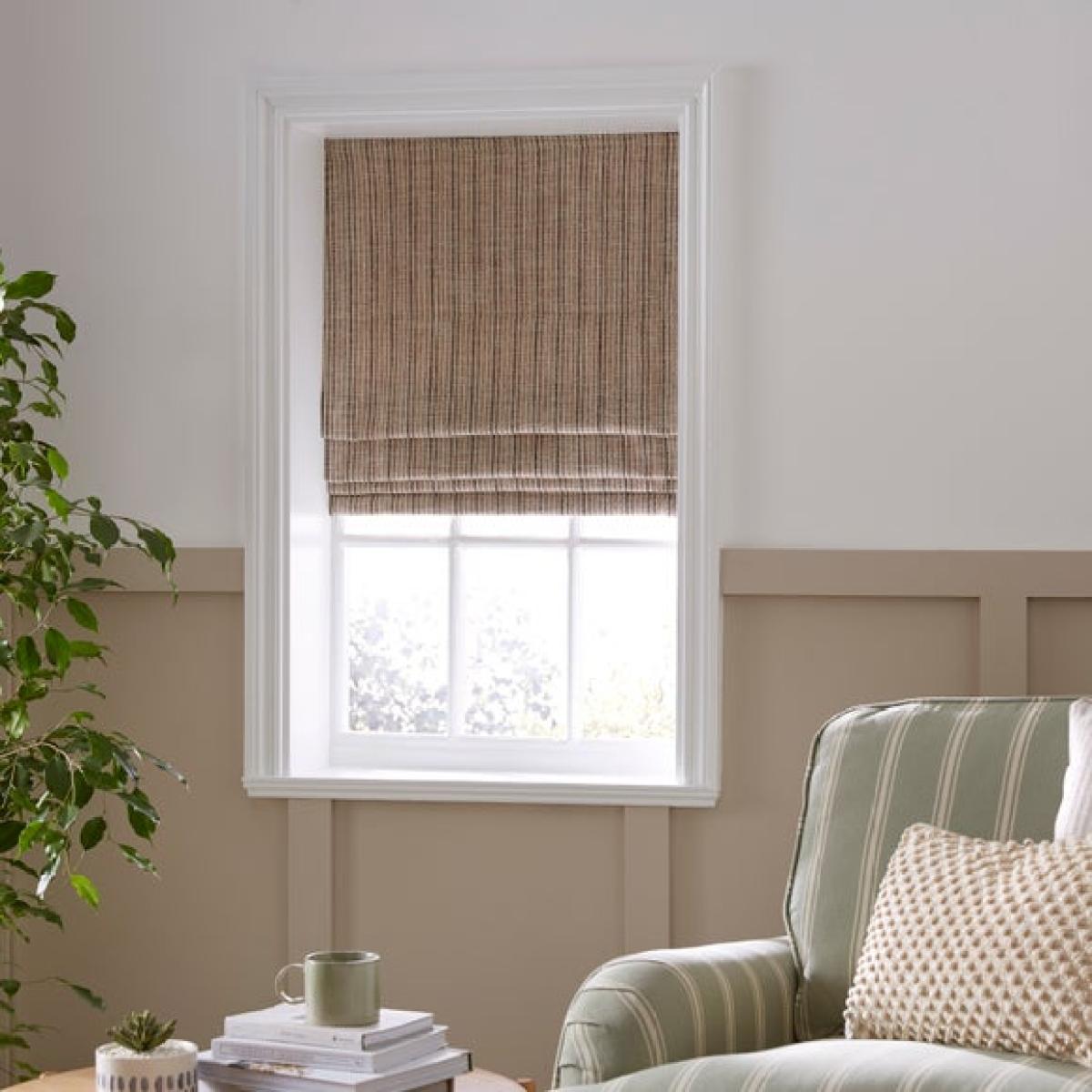 * Sophisticated stripe design * Suitable for inside or outside recess * Natural colourway * Pleated folds * Fully lined Add timeless style to any room with the Walker Stripe Roman Blind. Featuring a sophisticated stripe design in a natural colourway, it’s a versatile choice for modern and classic interiors. The fully lined fabric provides added privacy and light control, while the elegant pleated folds create a refined look. Suitable for both inside and outside recess fitting, it’s easy to install, and it's available in multiple sizes to ensure the perfect fit for your windows.