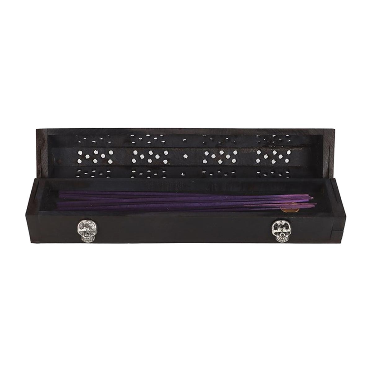 Ward off the undead with this Walking Dead Anti incense box set. Includes 10 lavender-scented incense sticks, providing a herbal and purifying fragrance for keeping zombies at bay. Accented with silver skulls, the wooden box doubles as both an incense holder and storage. A perfect set for adding a touch of excitement to your favourite dark hideaway.