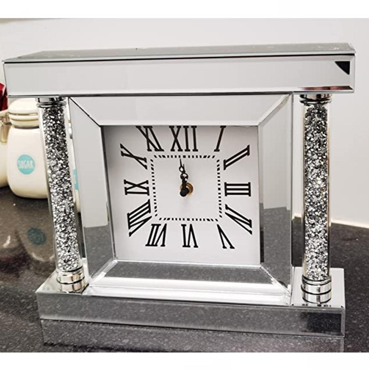 You can use it as the standalone clock on the table/window. The clock is mirrored glass with crushed diamonds within the border making this ideal for contemporary home decor. Stunning Brand-New Large Diamond Wall Clock Requires 1 x AA Battery (Not Included).