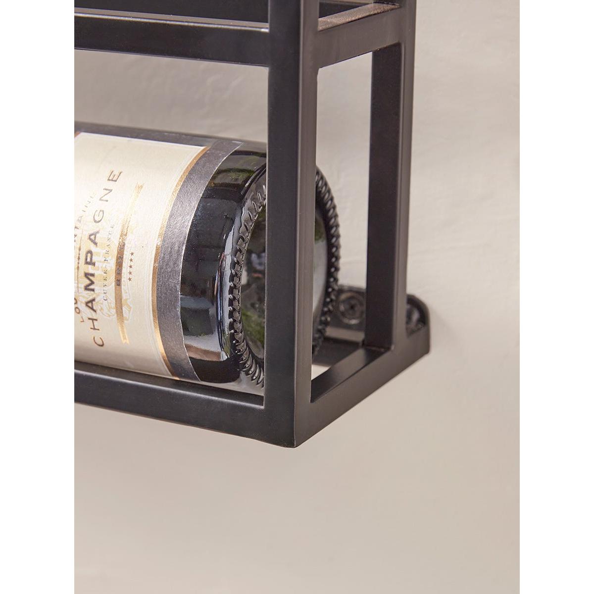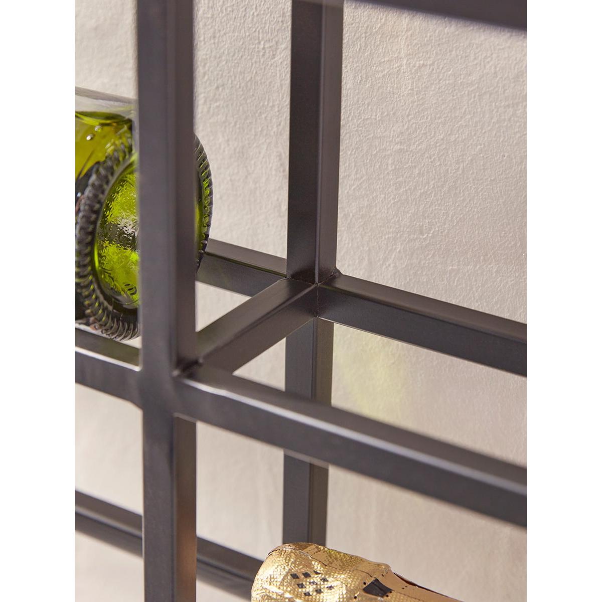 Simple in design, this black iron wine rack displays your bottles beautifully. Landscape viewing presents the bottles and their labels in a unique manner, adding a modern touch to your kitchen.
