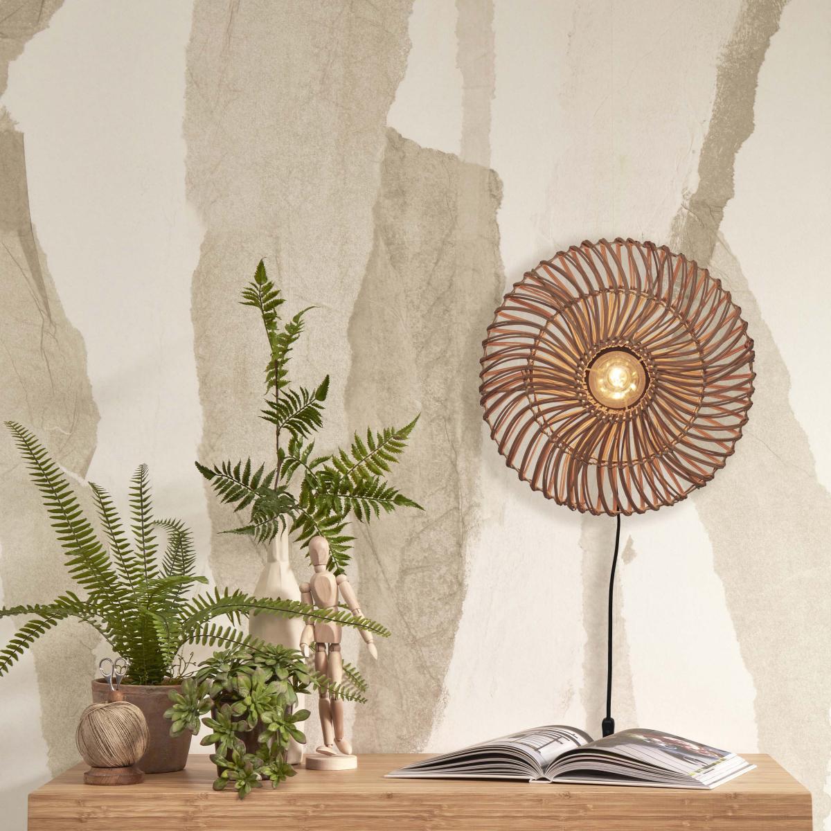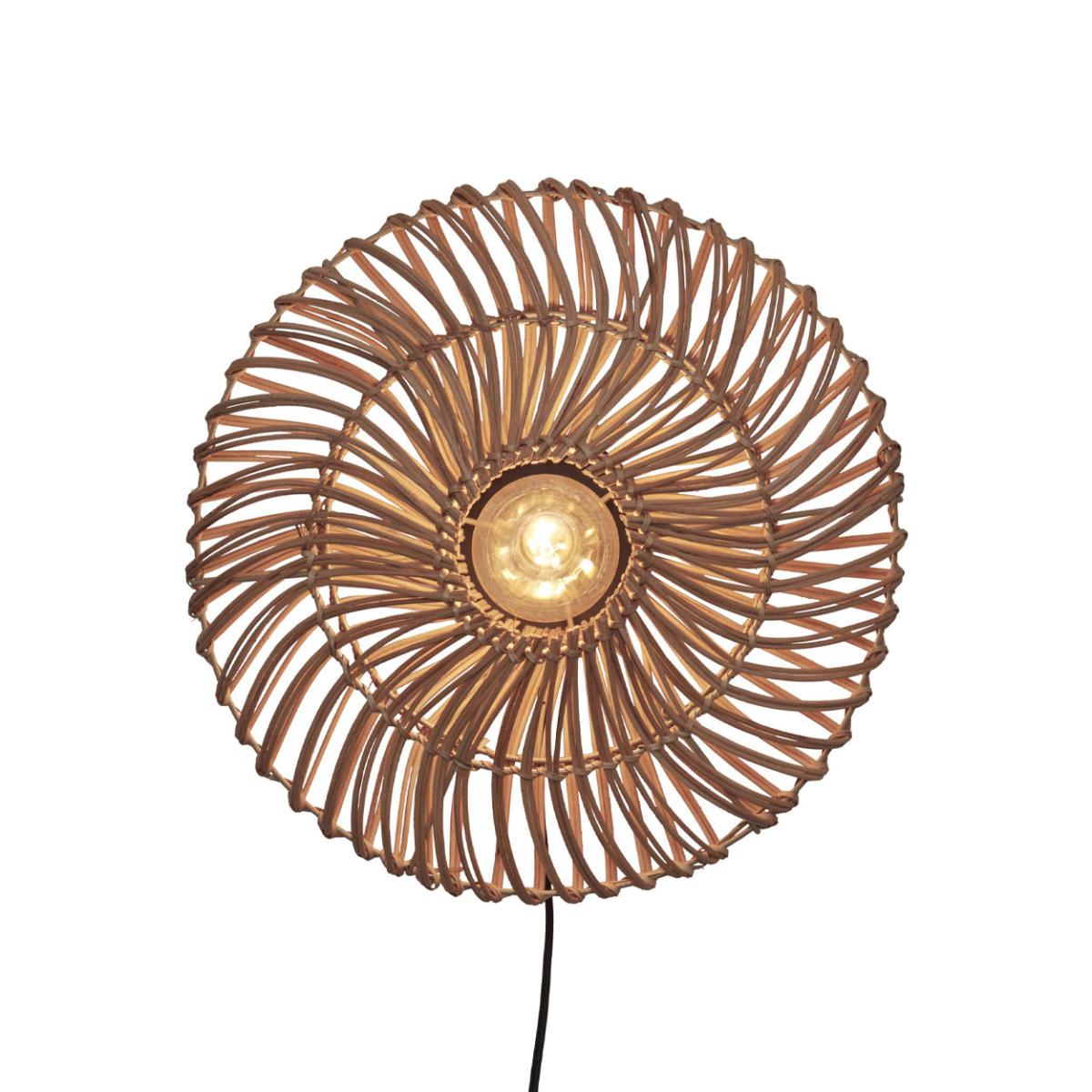 Wall light with plug Zanzibar Flat cane & fibres wood / Rattan / Ø 40 cm - GOOD&MOJO