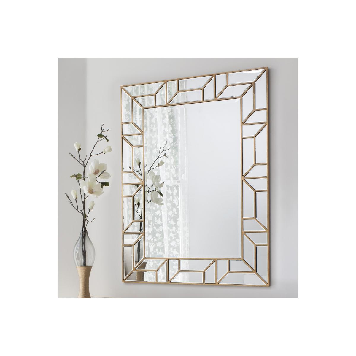 Dimensions W89 cm x H118 cm Beautifully rectangular mirror in a painted gold finish Gold painted finish. Best situated in a living room bedroom or hallway Modern design..