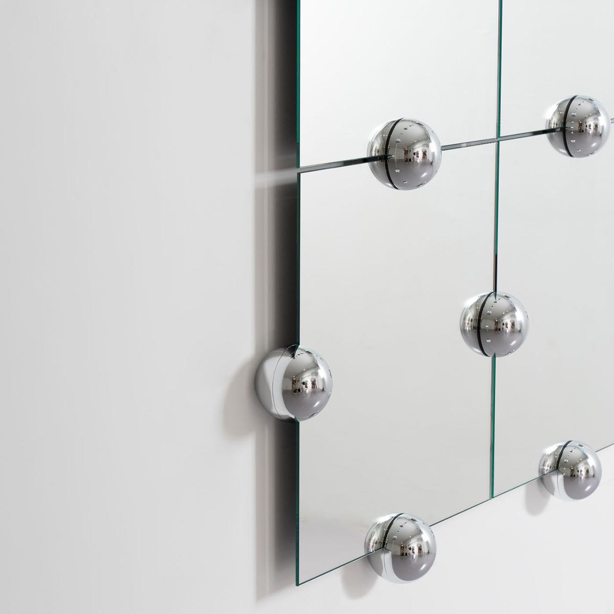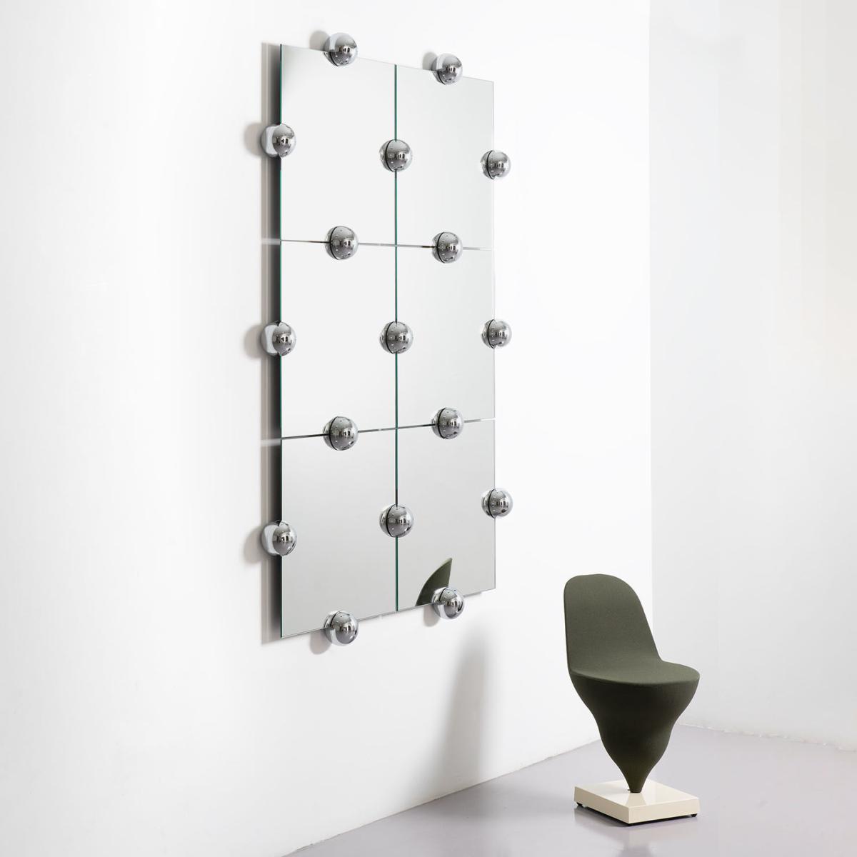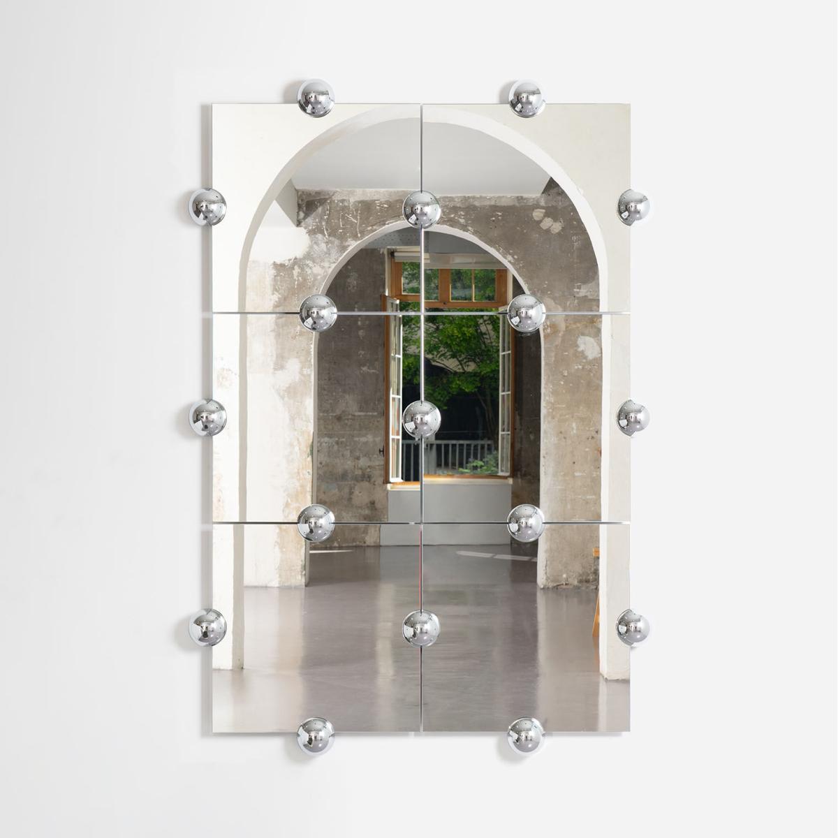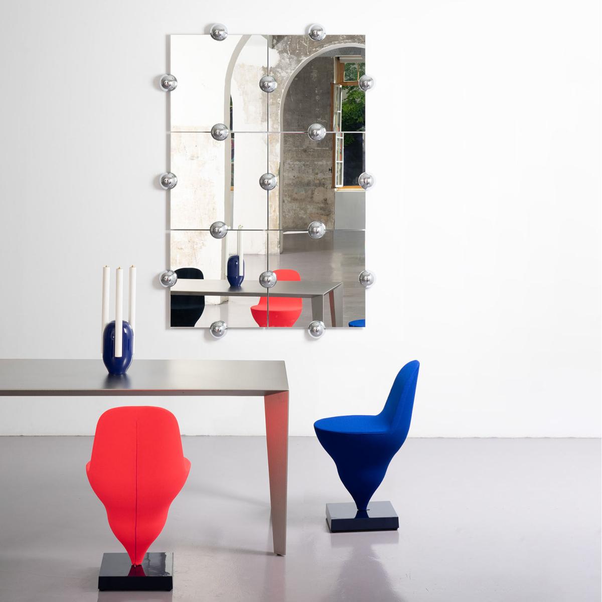 The Sphera mirror collection by Jean-Baptiste Fastrez is a contemporary interpretation of a technical device for creating mirrored walls. Very fashionable in the first half of the 20th century, the mirror clip has since been reduced to its sole function and today is no more than a fixture sold in the bathroom section of DIY stores. The Sphera mirror system sets out to reconnect with the decorative tradition of this invisible technical element by giving it an unexpected sculptural dimension and extraordinary flexibility. These chrome zamak spheres serve to attach the mirror to the wall while being a distinctive design element. A graduate of Ensci (National School for Industrial Creation), Jean-Baptiste Fastrez took his first steps under the direction of François Azambourg, then the Bouroullec brothers. Since then, he has ploughed his own furrow: hybrid and ultra-creative!