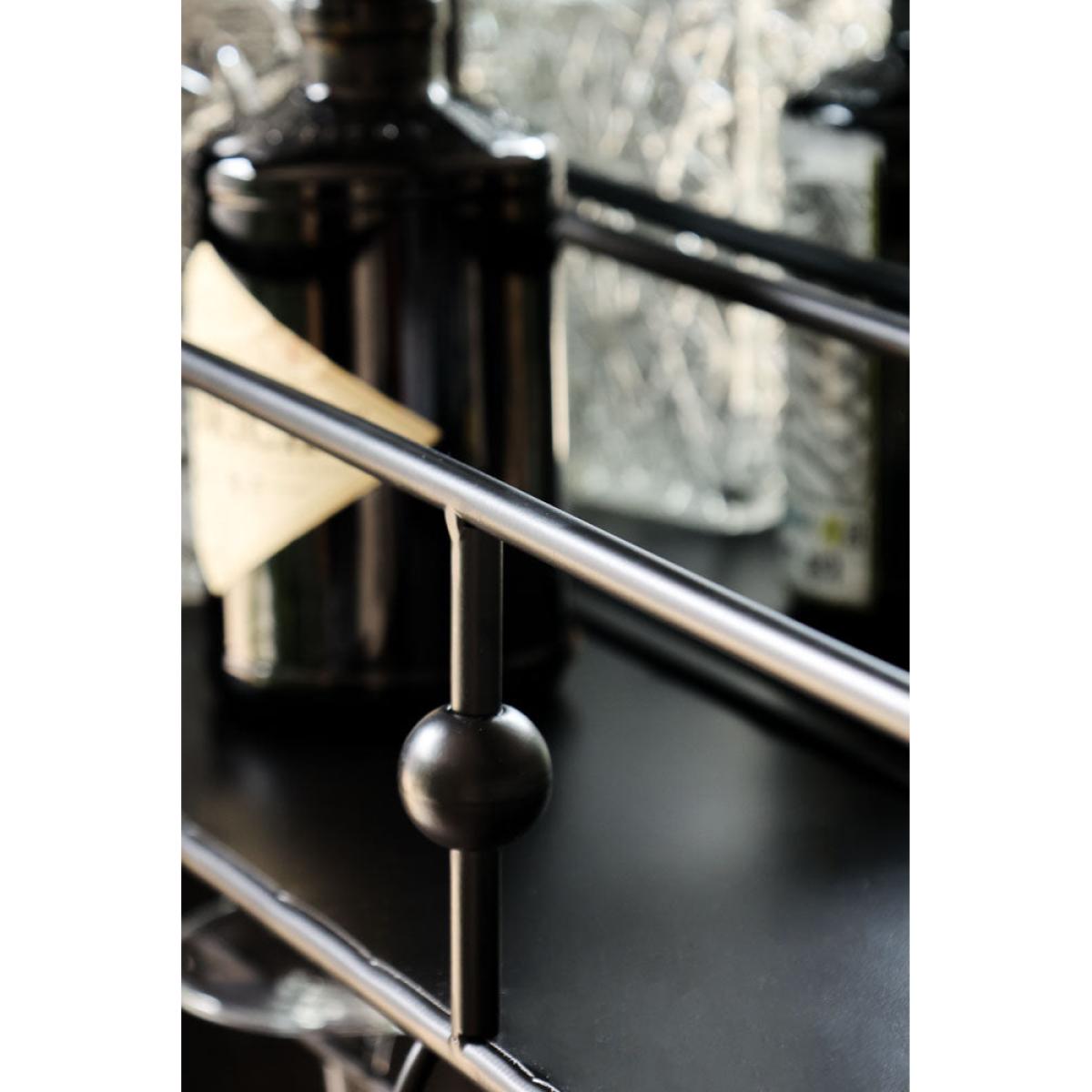 Wall-Mounted Black Metal Bar Shelf With Mirror