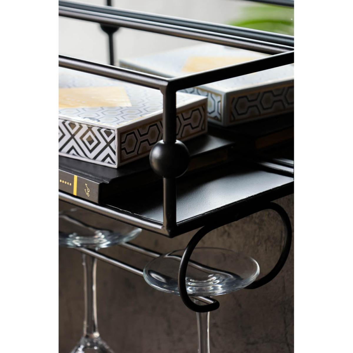 Wall-Mounted Black Metal Bar Shelf With Mirror