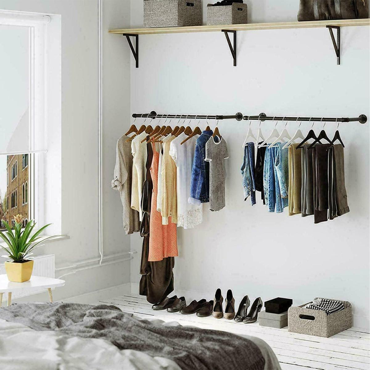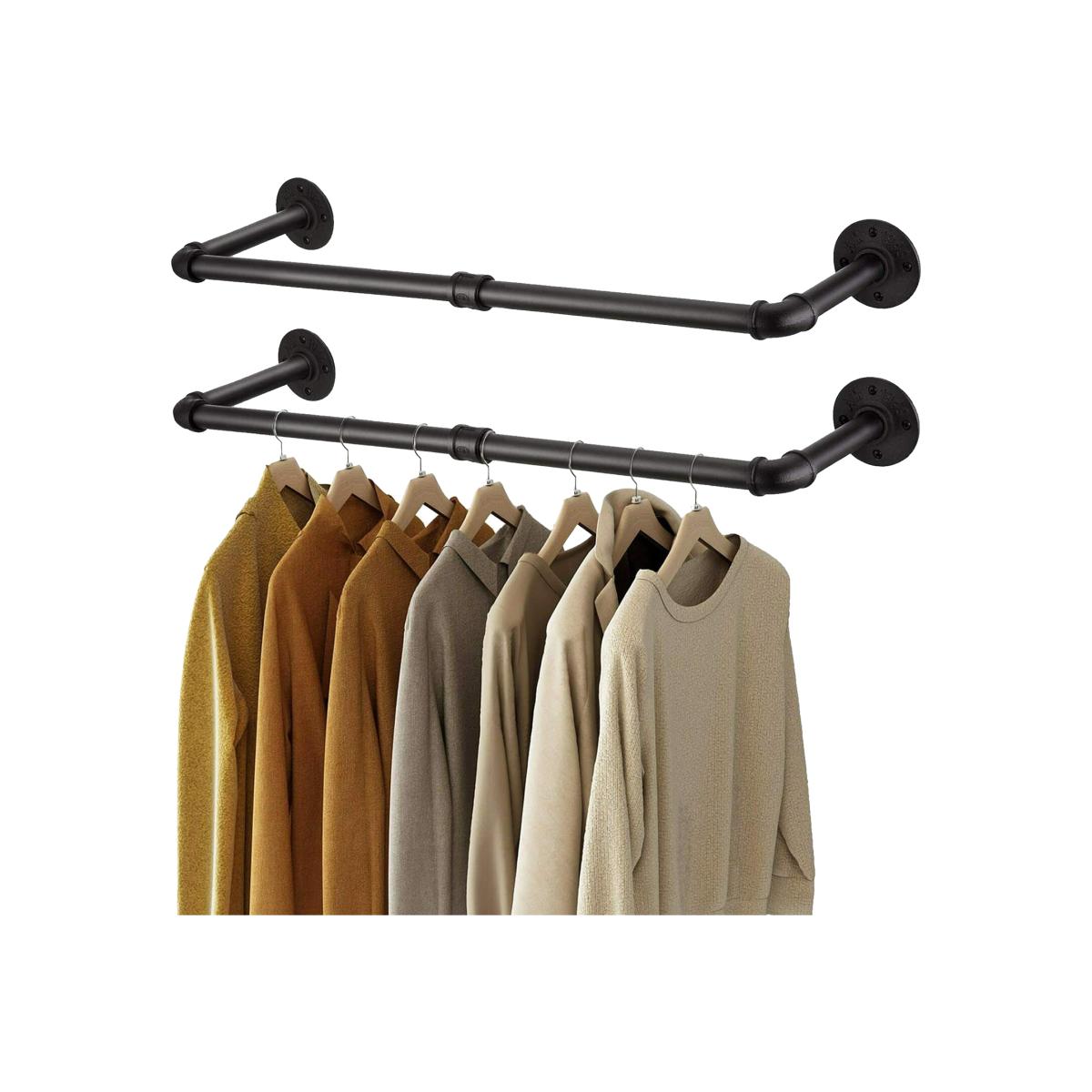 Our industrial pipe wall mounted clothes rail is made of high quality iron, to ensure durable and sturdy quality when use. Retro black matte style will blend with your room style perfectly. Space saving clothes rail, can create wall storage space for you to hang your clothes, keep them neatly organized and wrinkle-free. At the same time , you can find your clothing quickly. Suitable for bedroom, closet, wardrobe, shop, and so on.