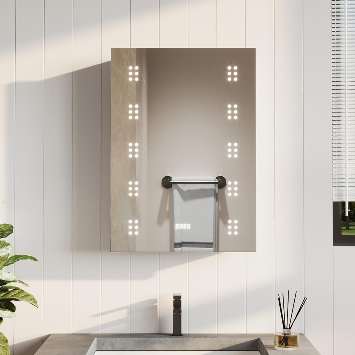 Wall Mounted LED Mirror Cabinet with Demister Pad and Shaver Socket - Chrome