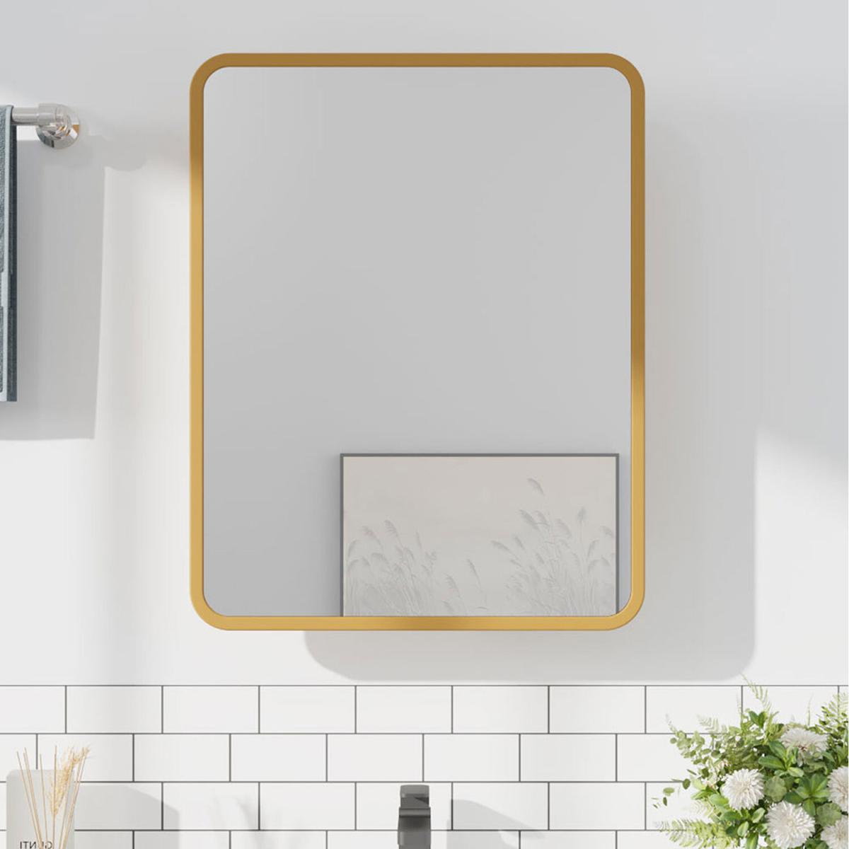 Wall-mounted Mirror Cabinet with Adjustable Shelves - Gold / 14kg / 61cm(W) x 13cm(D) x 76cm(H)