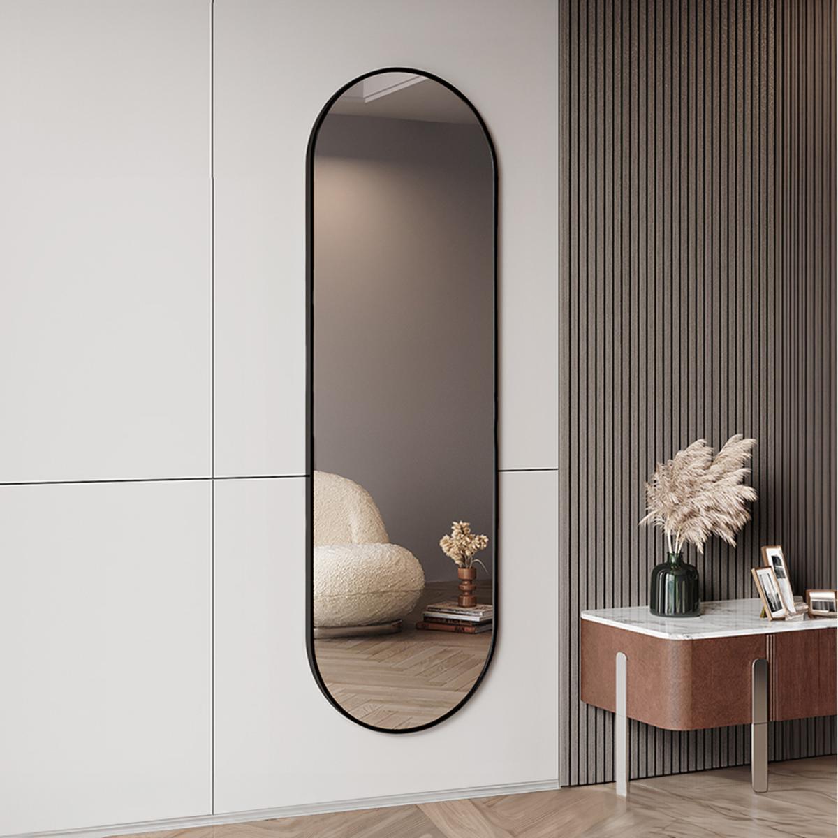 Wall Mounted Oval Full Length Mirror - Black / 40cm W x 150cm H x 2.8cm D
