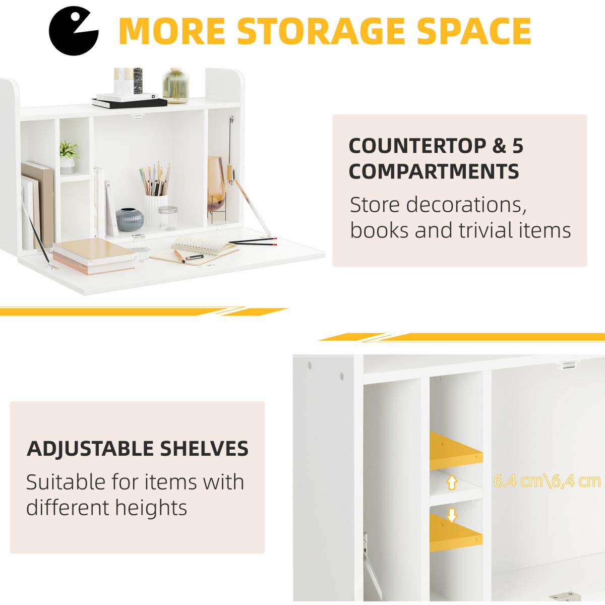 The wall mounted folding table from HOMCOM is a perfect solution to the family with limited space. It provides large storage space, you can put your photos or decorations on the upper space for displaying. This folding wall table has a magnetic working panel that can be closed when not in use, meaning not only do you save space but create a convenient storage area. Additionally, the adjustable shelf of the study desk meets your different storage needs. A great piece for your home or office.