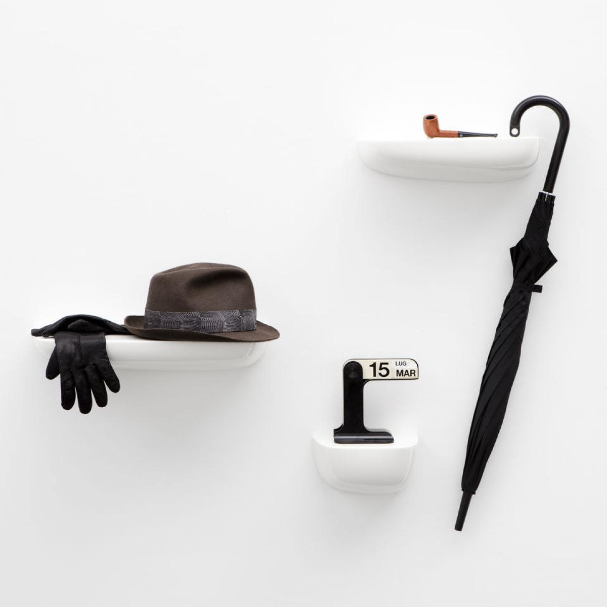 Since the early 2000s, the work of brothers Ronan and Erwan Bouroullec has emerged as one of the most representative of the dynamism of French design. Working as a pair since 1998, the two brothers now design for many industrialists, while pursuing experimental research. The Corniches were born from the need for small improvised storage spaces for various objects. “Just as we hang our things on a rock protruding from a cliff before diving into the sea, we need small informal storage spaces every day”, explains Ronan Bouroullec. That’s why the Corniches are neither classic shelves nor simple horizontal surfaces, but rather individual, isolated outgrowths in the environments we create. Whether storing keys by the front door, having everything within reach in the bathroom, a display surface for a small collection of objects or a large installation, the Corniches offer a new way to use walls in our living space. They’re made of high-quality plastic in a variety of shapes, sizes and colours.
