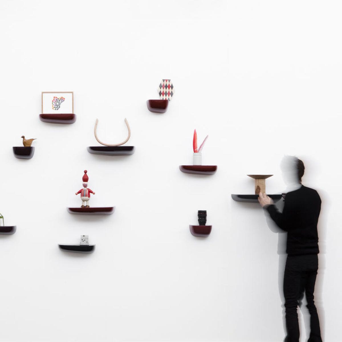 Since the early 2000s, the work of brothers Ronan and Erwan Bouroullec has emerged as one of the most representative of the dynamism of French design. Working as a pair since 1998, the two brothers now design for numerous industrialists, while pursuing experimental research. The Corniches were born from the need for small improvised storage spaces for various objects. “Just as we hang our things on a rock protruding from a cliff before diving into the sea, we need small informal storage spaces every day”, explains Ronan Bouroullec. That’s why the Corniches are neither classic shelves nor simple horizontal surfaces, but rather individual, isolated outgrowths in the environments we create. Whether storing keys by the front door, having everything within reach in the bathroom, a display surface for a small collection of objects or a large installation, the Corniches offer a new way to use walls in our living space. They’re made of high-quality plastic in a variety of shapes, sizes and colours.
