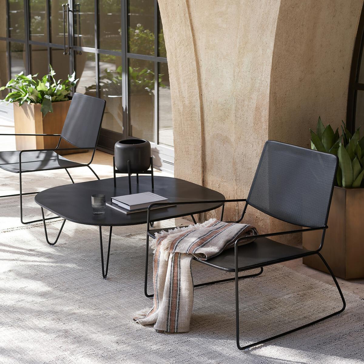 This low table in micro-perforated metal, treated for outdoor use and makes a perfect addition to your terrace or patio.