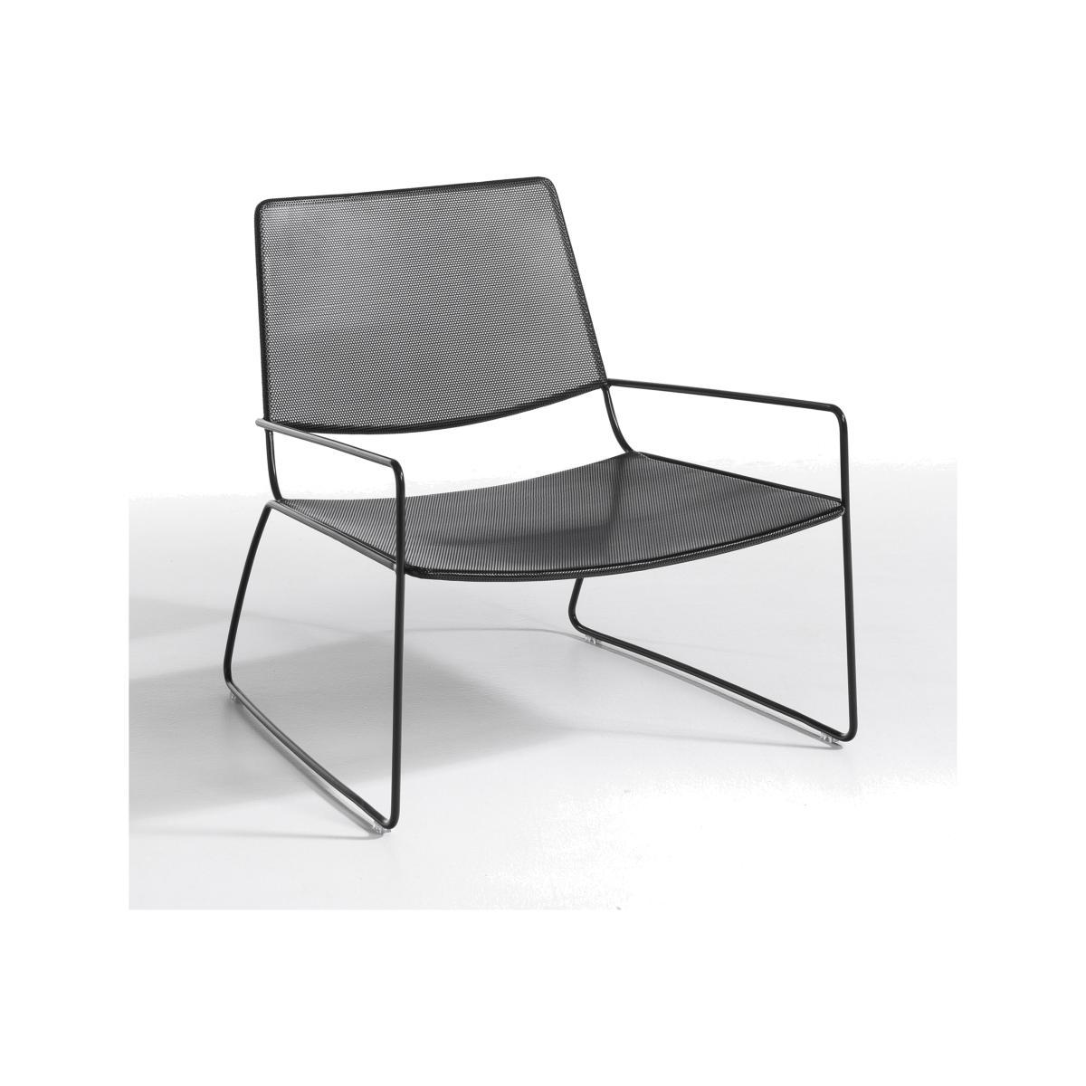 Micro perforated metal armchair, treated for outdoor use. Understated design. A very contemporary style.