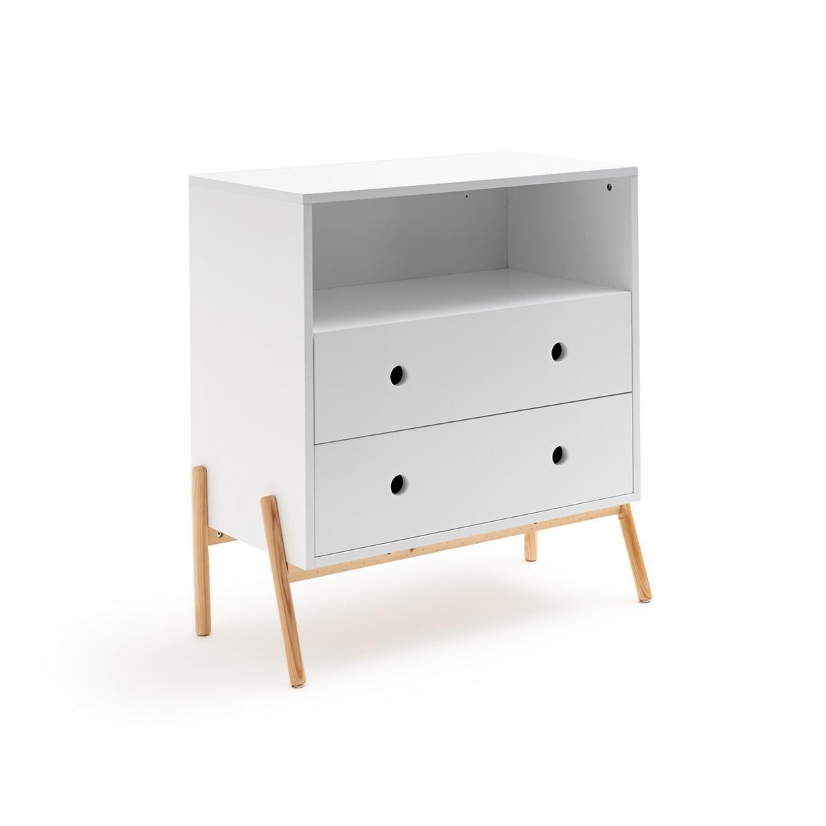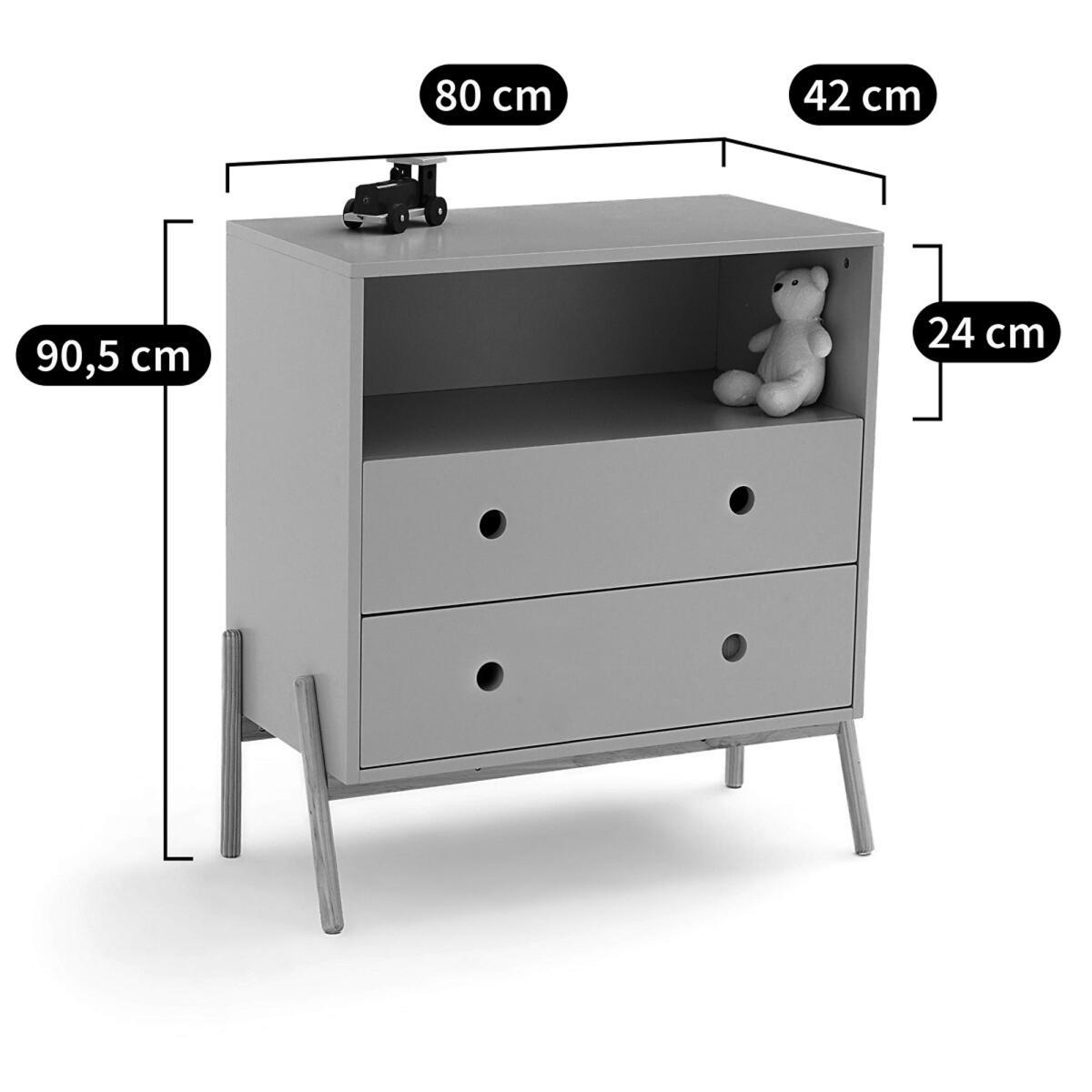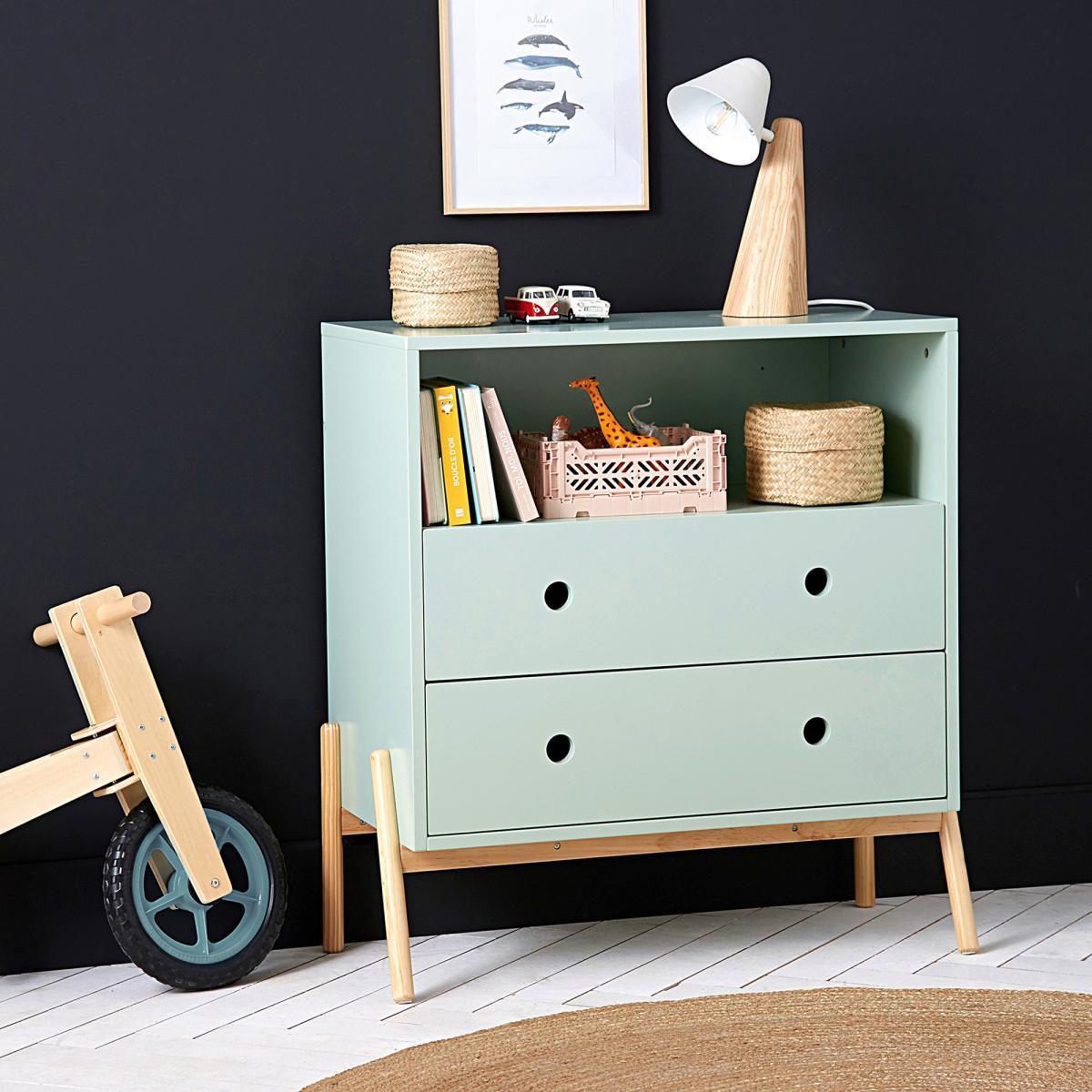 This sweet chest of drawers is ideal for toddler's or young child's bedroom. In a calming duck-egg blue with natural pine legs, it's equipped with a generous alcove shelf above two deep drawers. Super practical with space for all your child's essentials, it will bring a breath of fresh air to the bedroom!