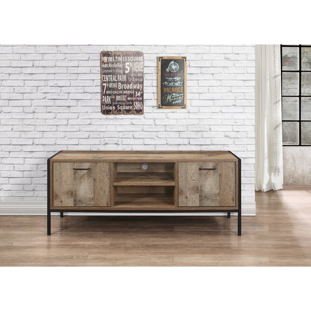 The Willis TV unit from the wider Willis range is a true industrial-chic piece. Crafted from a wood effect material and a contrasting black metal frame, this will look at home in any modern apartment or contemporary home. Featuring two pull out drawers and two compartments, it’s not short on storage options. There’s even two shelves - so you don’t have to choose a set top box or a games console, you can have both! Maximum TV weight 40kg Two drawers, two shelves and two compartments Easy wipe clean surfaces Many matching options available