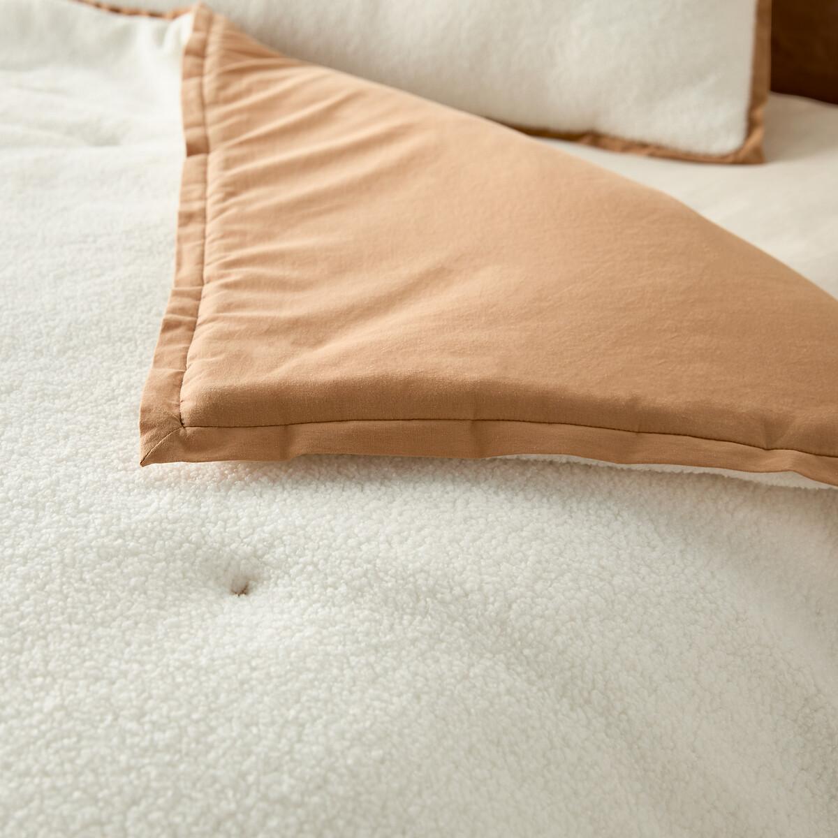 Want a real cocoon of softness? Cosy as can be, Walls has a fleece side punctuated with embroidered crosses and a washed cotton side. It creates a warm atmosphere in your bedroom. An invitation to relax. Product Details • Front fleece, 100% polyester • Back 100% cotton, contrasting colour • Washed cotton • Stuffing 100% polyester (250g/m²) • Contrasting flat ruffle finish edges • Contrasting cross stitch embroidery Care Advice • Machine washable at 30°CSizes • 90 x 190cm • 150 x 150cm