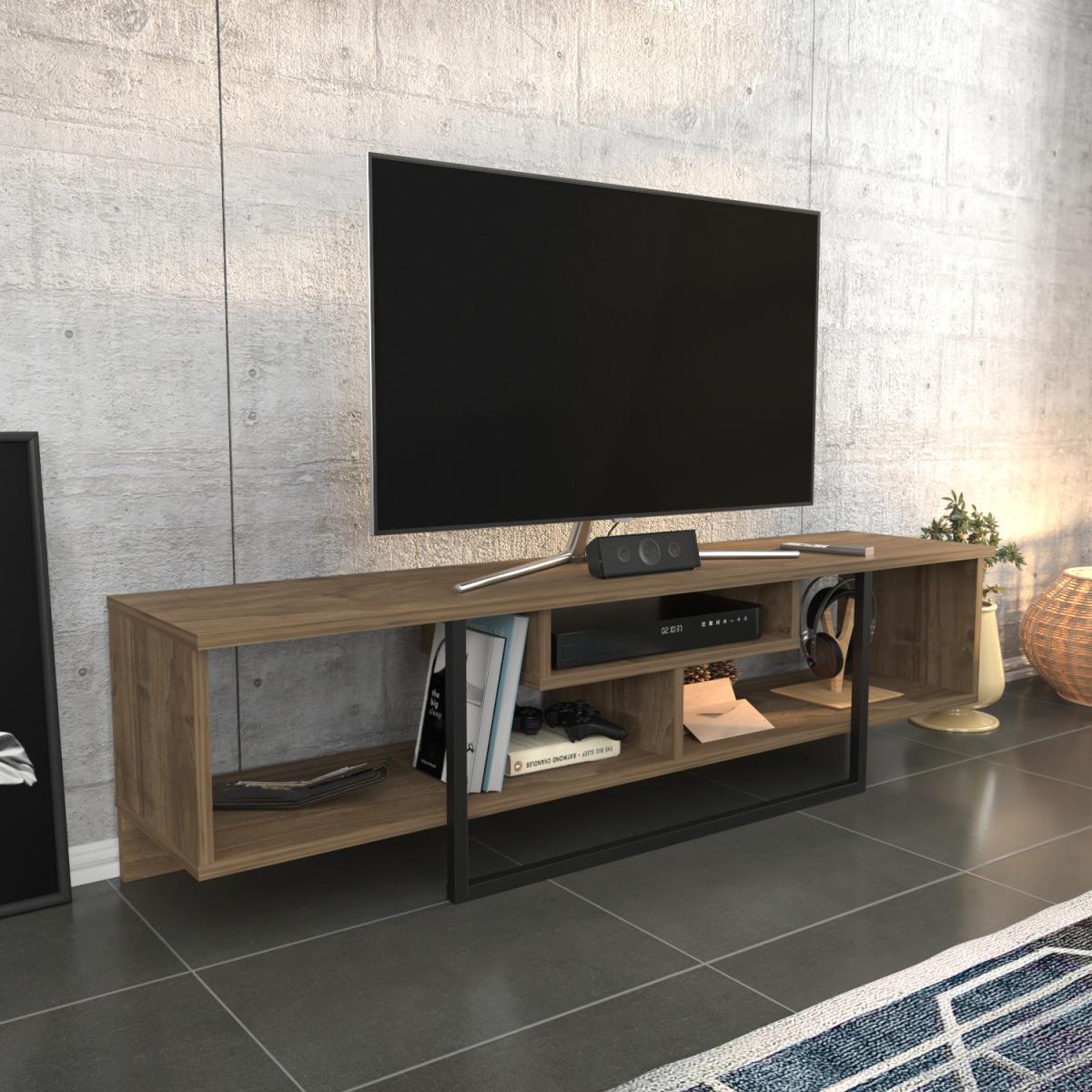Asal 150 cm wide simple and minimalist media stand for TVs up to 65'' is defined by practical functionality and streamlined design. Offering three stylish open shelves, this design includes 48 cm wide and almost 11 cm high area in its center that is perfect for a TV tuner, remote controller or other small media devices. Top this design with a sleek flat-screen TV, then deck out the interior open shelves with your favourite books and DVDs, framed family photos, and hurricane candles, while using the middle shelf for your new video game console and the cable box. Reversible use that both front and back sides of the stand can be used as the front side interchangeably. The media stand is made of 18 mm thick quality melamine coated particle board and banded with first-class PVC edge banding tape. The stand is also enhanced and strengthened with the front metal leg which makes it sturdy and durable. The metal part is coated with scratch and impact-resistant industrial static paint. It is manufactured using eco-friendly and health-friendly TSE-certified materials. The product will be delivered to the customer in the original package as disassembled. It is designed to be assembled by the customer easily using simple household tools like a power drill. Assembly instruction and installation hardware are included in the package. For fast and error-free installation, product parts are numbered with stickers in accordance with the assembly guide.