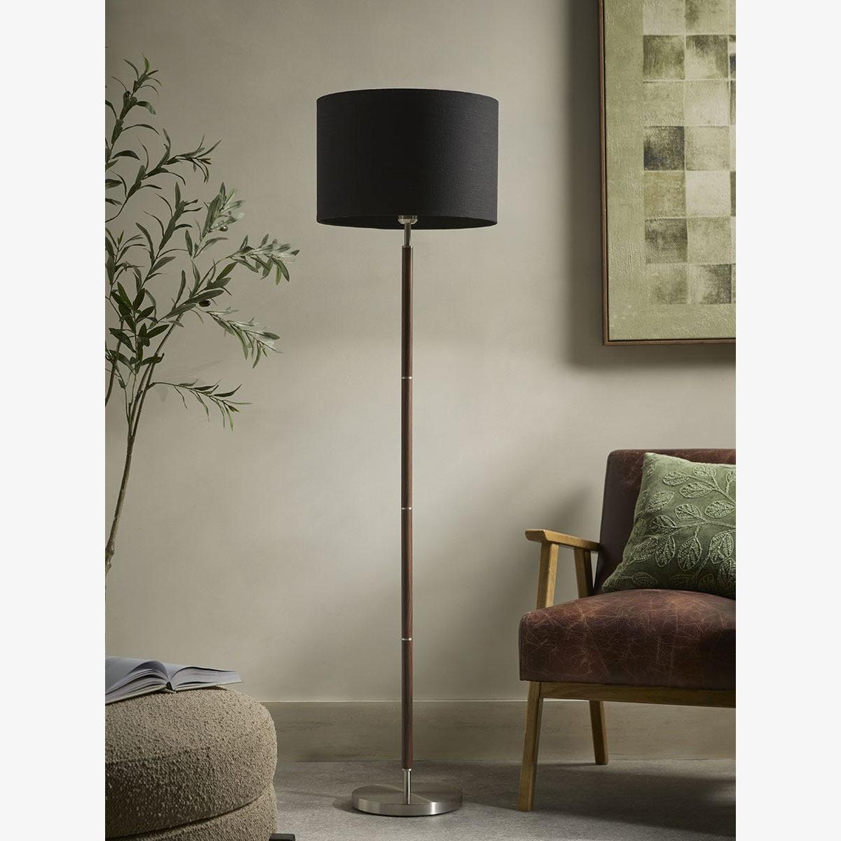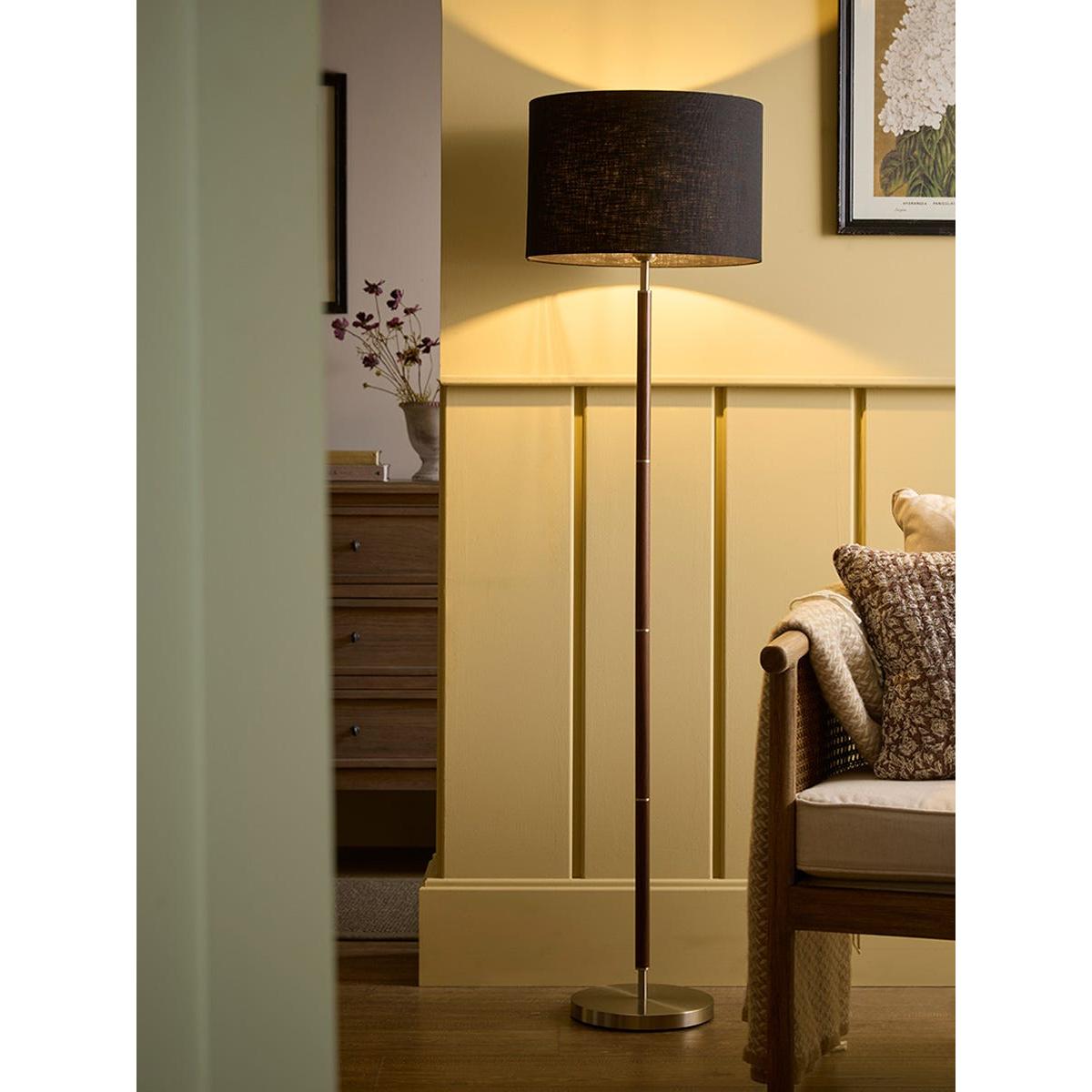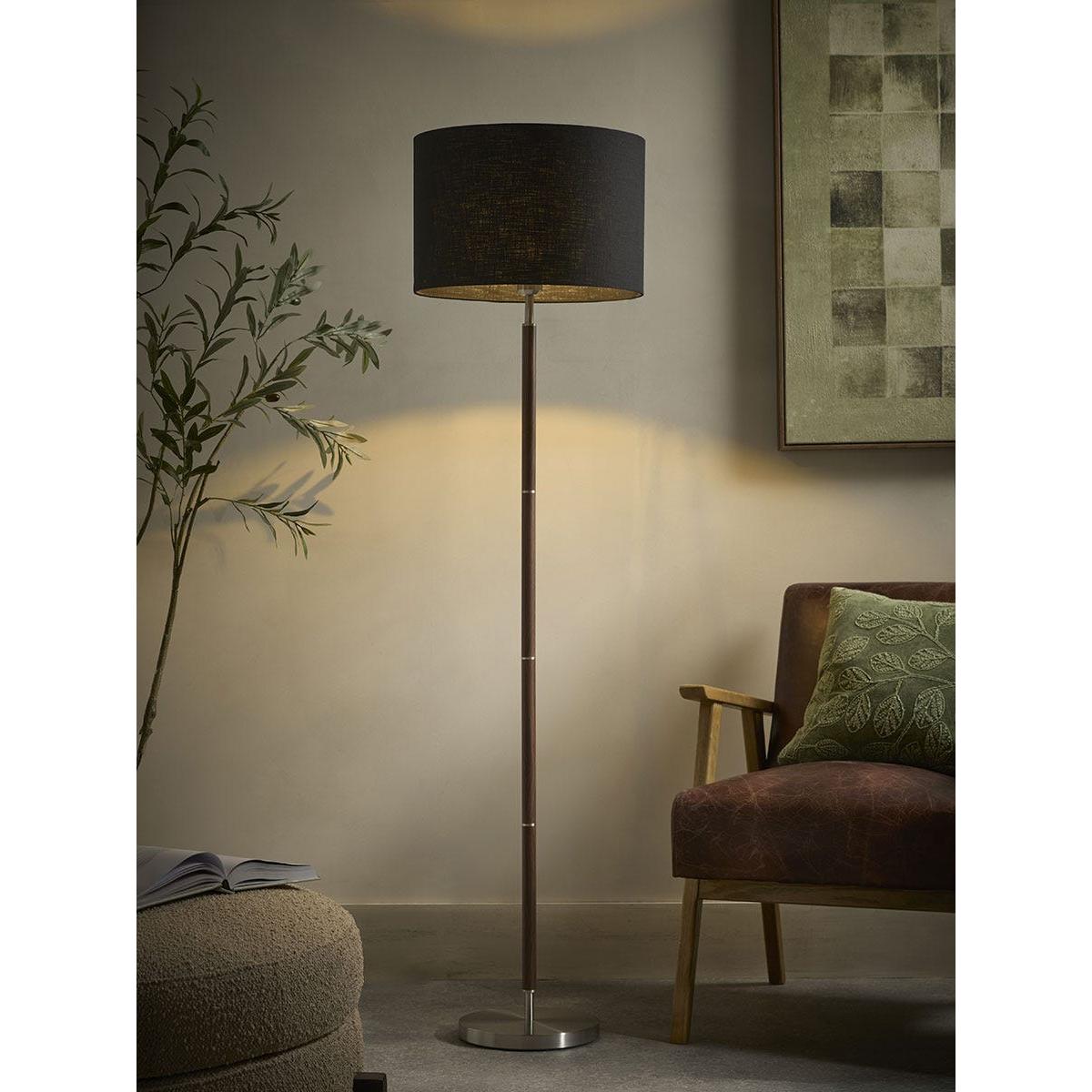 Bringing stylish light to any corner of your home, this floor lamp features a walnut veneer stem with brushed steel details and base. The dark linen look shade adds to the moody sophistication of this floor light which is perfect for ambient lighting in dining or sitting rooms.  Discover how to create the perfect lighting scheme for your home using our Lighting Buying Guide.