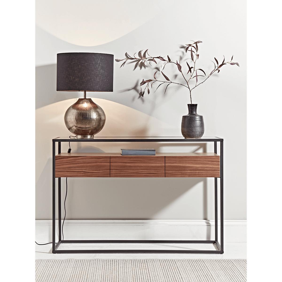 I love this console as it combines warmth and sophistication effortlessly. The walnut finish adds a natural, inviting touch, while the glass top keeps the look light and versatile. It's ideal for contemporary and mid-century interiors, functioning well in hallways, living rooms, or even as a stylish pairing in a bedroom. For practical styling, consider layering it with a sculptural lamp, some green foliage or minimal decor in ceramic or metal, and perhaps a tray for organising keys or accessories. Keep accessories understated to highlight the table’s sleek lines and the beautiful wood grain.