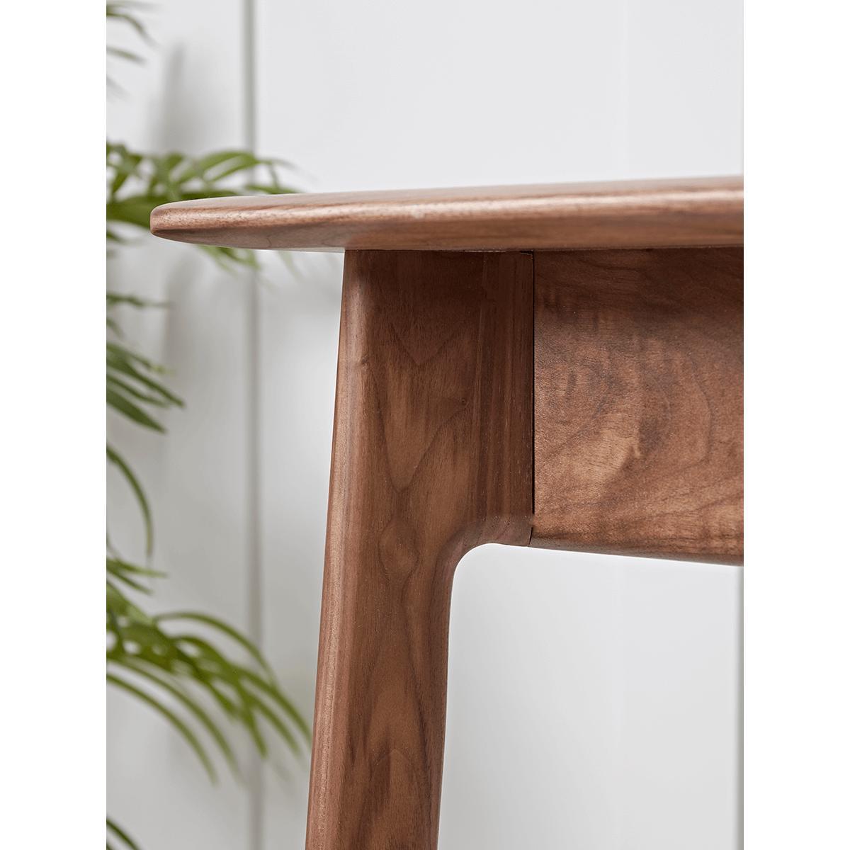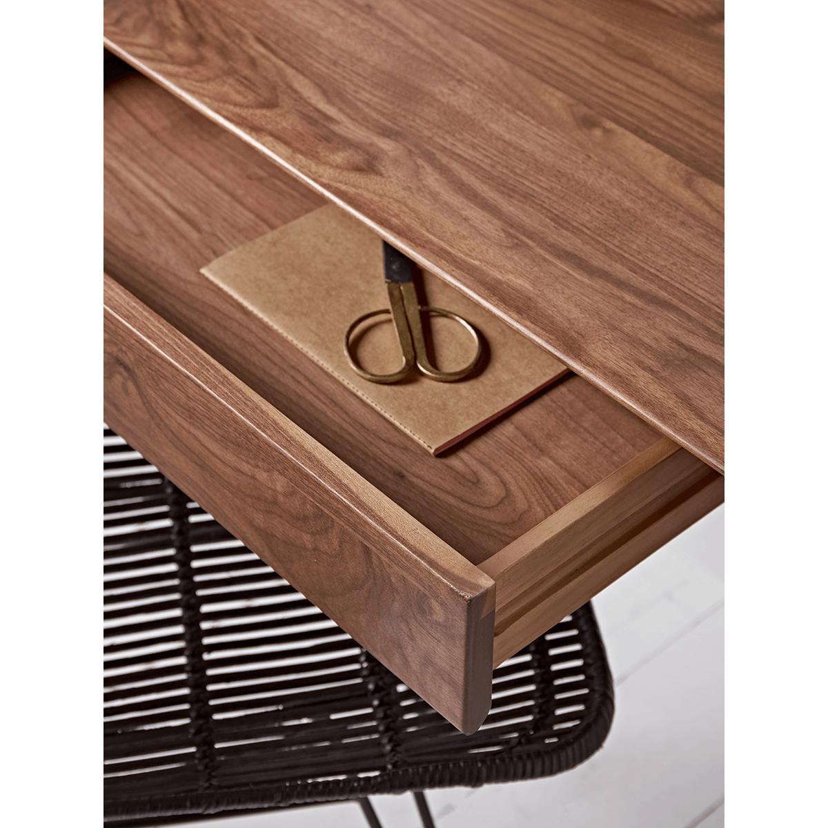 With a nod to the work of Danish mid-century design pioneers, but with a contemporary update, our solid walnut desk will make an instant impact to your home office, and will only elevate your living space should you be unable to work in a separate room. A central drawer provides space to stow useful bits and bobs within this wonderful piece of design furniture. Simply accessorise with a worthy. Office chair. From our collection and you’re set!.