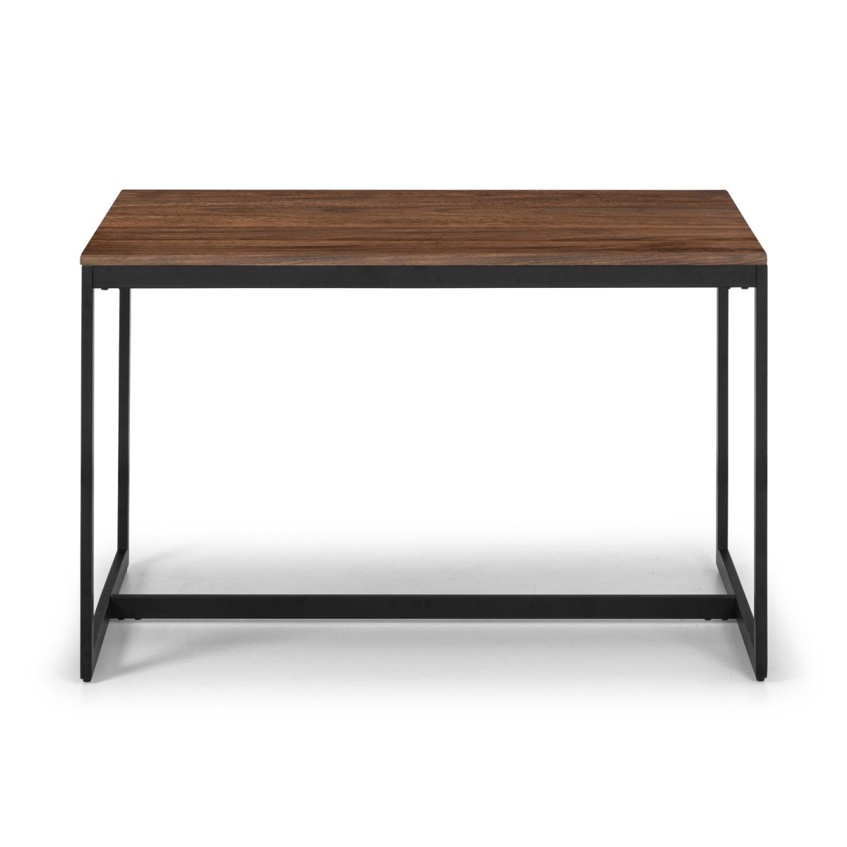Create a contemporary feel in your dining room with this dining set. This set is strong and durable but perfectly lightweight. Featuring an industrial style dining table and bench with black coated metal frames and walnut oak foil tops, paired with complementary dining chairs upholstered in on-trend charcoal grey fabric. Creating a functional and comfortable dining experience perfect for your home.