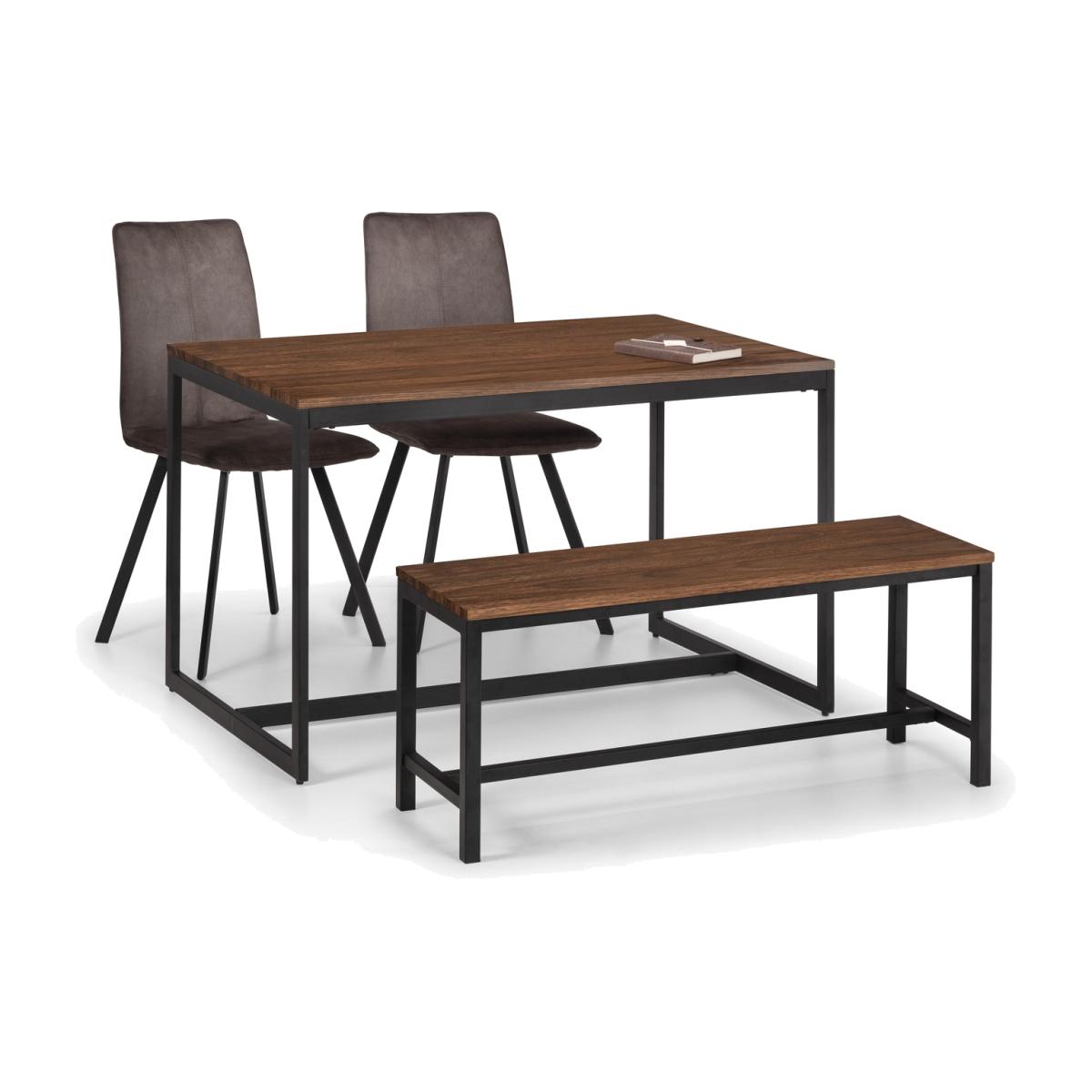 Walnut Dining Table with Matching Bench and 2 Grey Suede Dining Chairs - Julian Bowen