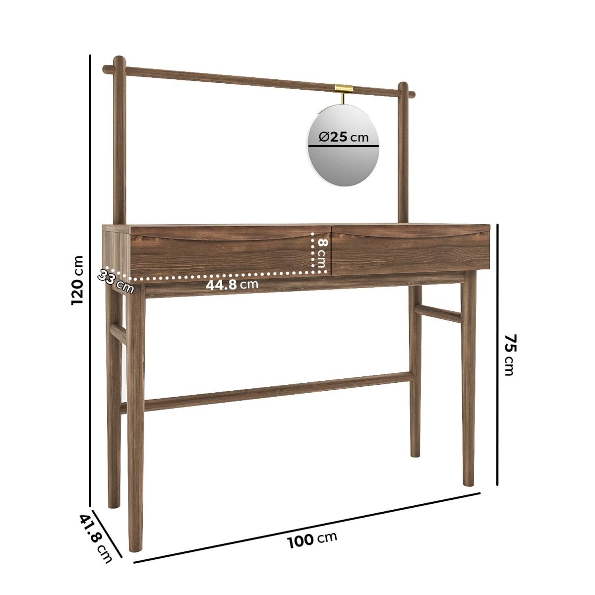 Walnut Mid-Century Dressing Table with Mirror and Drawers - Frances