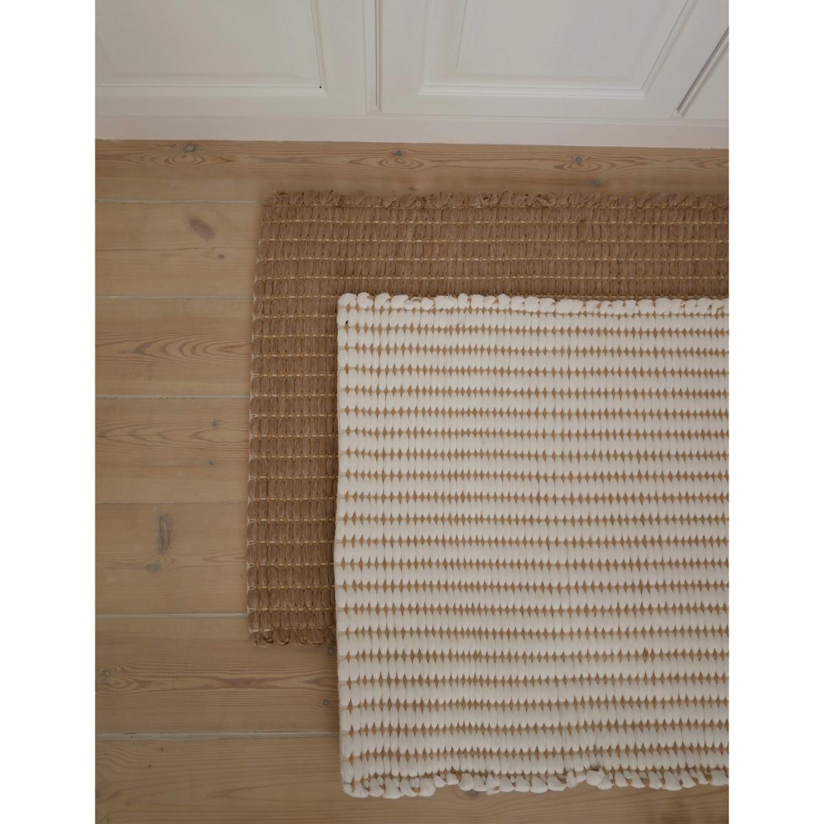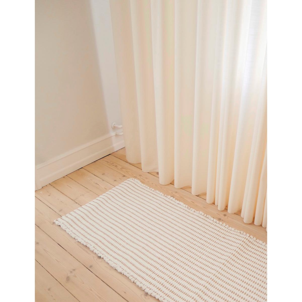 Hazelnut rug 60x150 cm from Elvang Denmark is made of recycled fibres from the textile industry and contains a mixture of cotton, polyester and viscose woven together with jute. This handmade rug is Fair Trade-labelled, which means that the manufacturers ensure good working conditions and a fair wage for all employees. This oblong rug works well in the bathroom or kitchen and creates a cosy and comfortable feel.