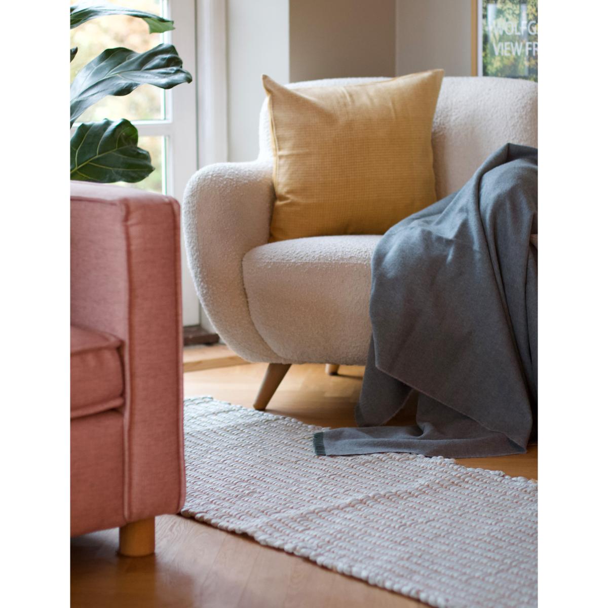 This simple yet versatile rug is a fantastic addition to a range of interiors, thanks to its neutral ivory tone and subtle textured pattern. I love its ability to add warmth and softness to both modern and classic spaces, making it ideal for living rooms, bedrooms, or even cosy dining areas. For styling, consider layering it over neutral or wood floors to create a relaxed, approachable look. Practical tips include pairing it with minimalist furniture for a tidy aesthetic, or adding colourful accessories and cushions for a more vibrant vibe. Its manageable size also makes it a good fit for smaller spaces or to define a seating area without overwhelming the room.