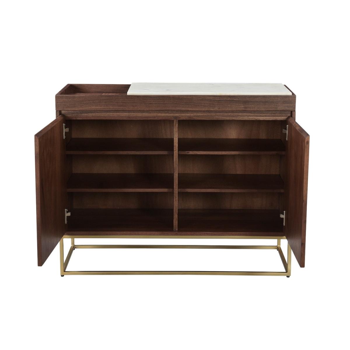 Features we love Solid walnut shoe storage with marble top. Fits up to 18 pairs of shoes dependant on shoe size. Inlay tray feature for storage or accessories. Minimalist brass frame suits any home interior Complete the look with matching pieces. All about me. Store your shoes in style with the Zola walnut and marble shoe cabinet. With two large cupboards and space for up to 18 pairs of shoes this piece will make the perfect addition to your hall or entrance way. Finished with an open brass frame the different textures of this piece complement each other perfectly. Discover the matching counterparts also in the Zola range. Need to know. Dimensions. H80 x W100 x D40 cm Shape. Rectangle Colour. Walnut and marble Finish. Solid walnut with marble Material. Solid walnut marble and metal Assembly required. Yes