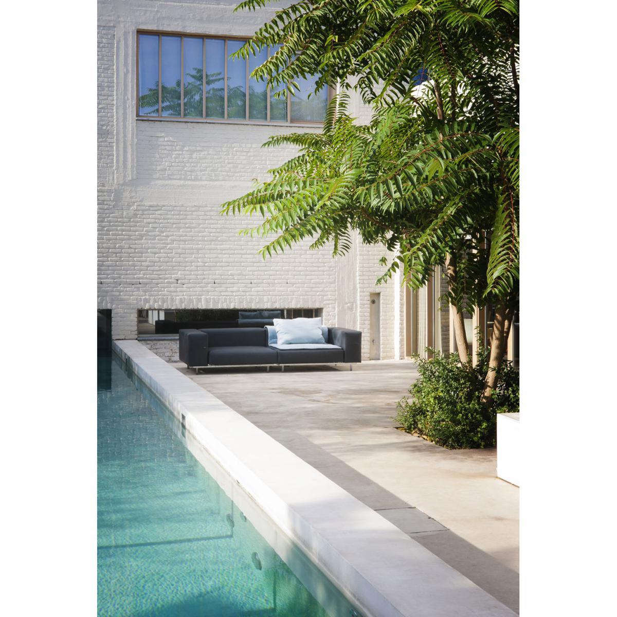 Designer Dirk Wynants, the Extremis brand manager, reinvents the outdoor sofa and offers a versatile Tarpaulin coating, an extremely sturdy material that keeps Walrus outdoors in all climatic circumstances. In all seasons, you will have a dry and comfortable sofa. Tarpaulin fabric is water repellent, anti-stain and dries very quickly. The swelling of the cushions ensures rapid drainage of water. Wide and deep (101x101), Walrus is convivial, designed for pleasant moments to be shared among friends. Practical, Walrus has an ingenious storage pocket on the back. Including the cover and cushion of the same collection, sold separately. This central module can be combined with the corner modules of the Walrus collection to form a large, modular sofa.