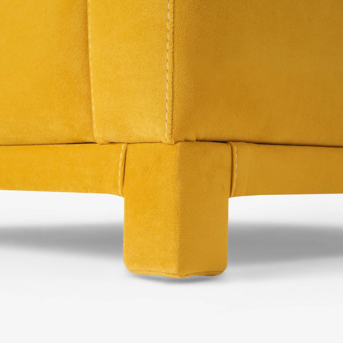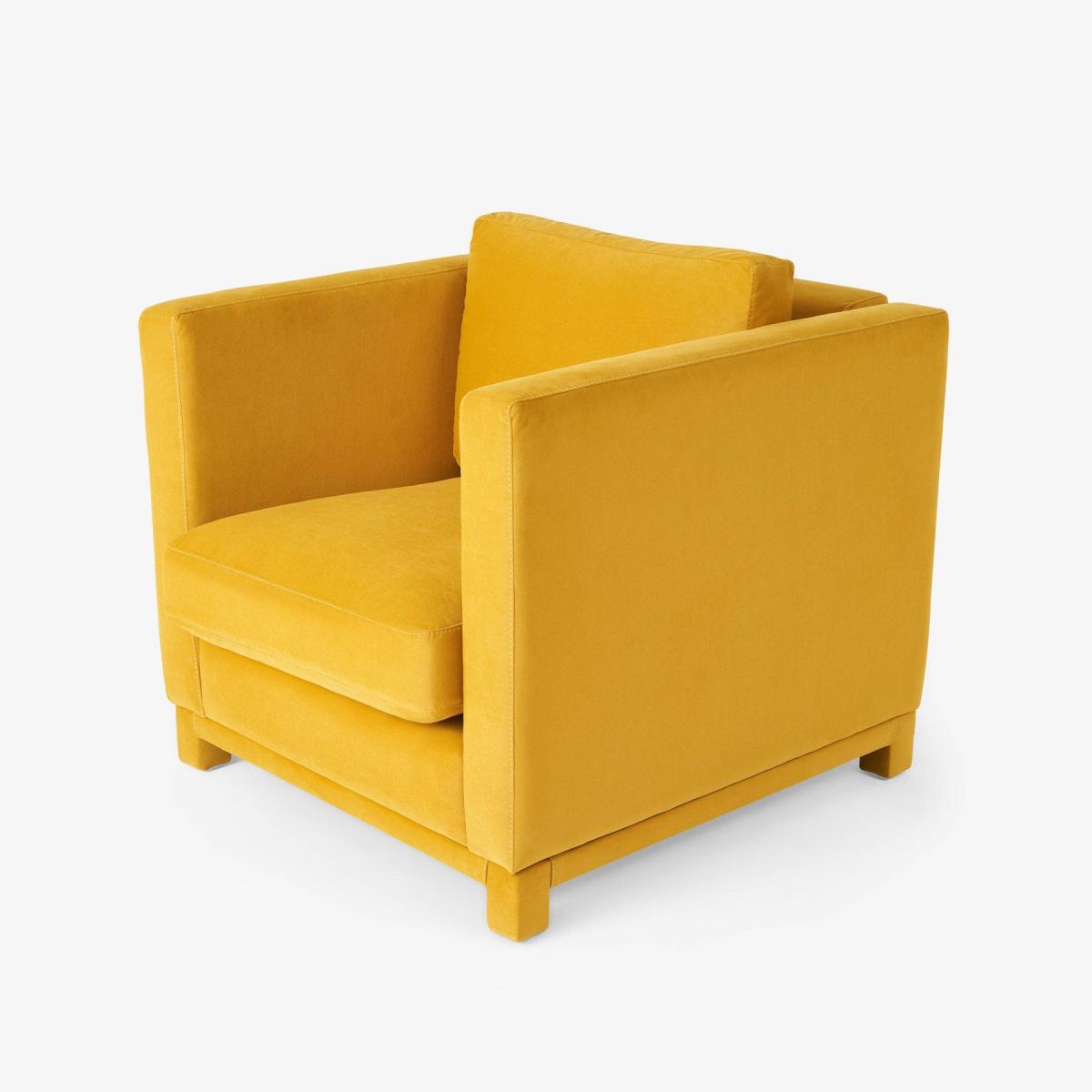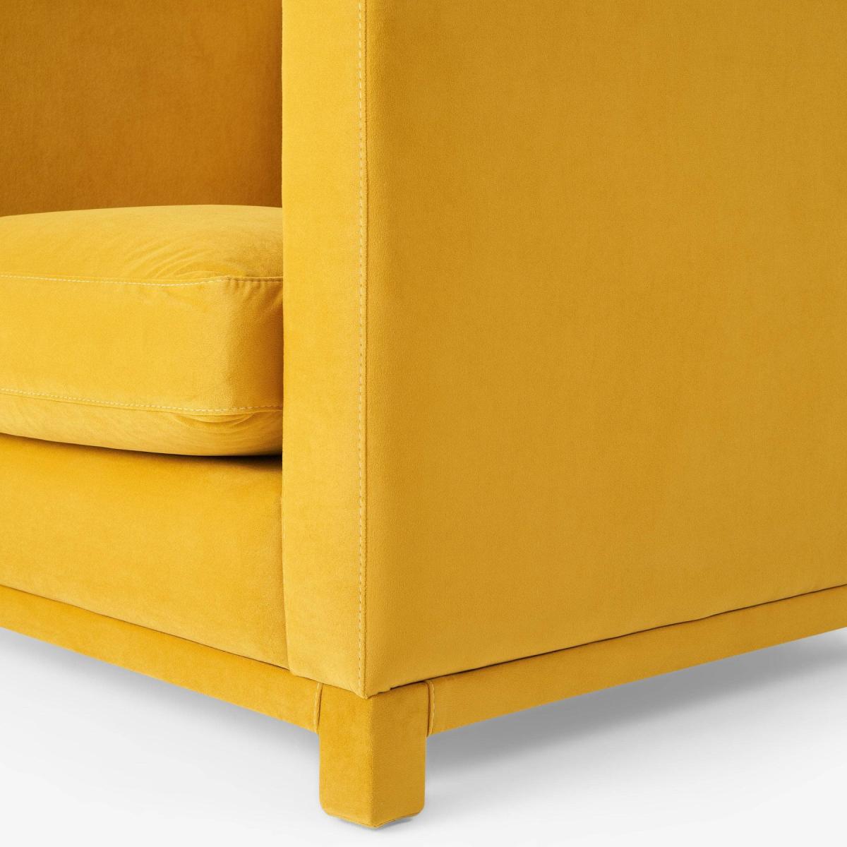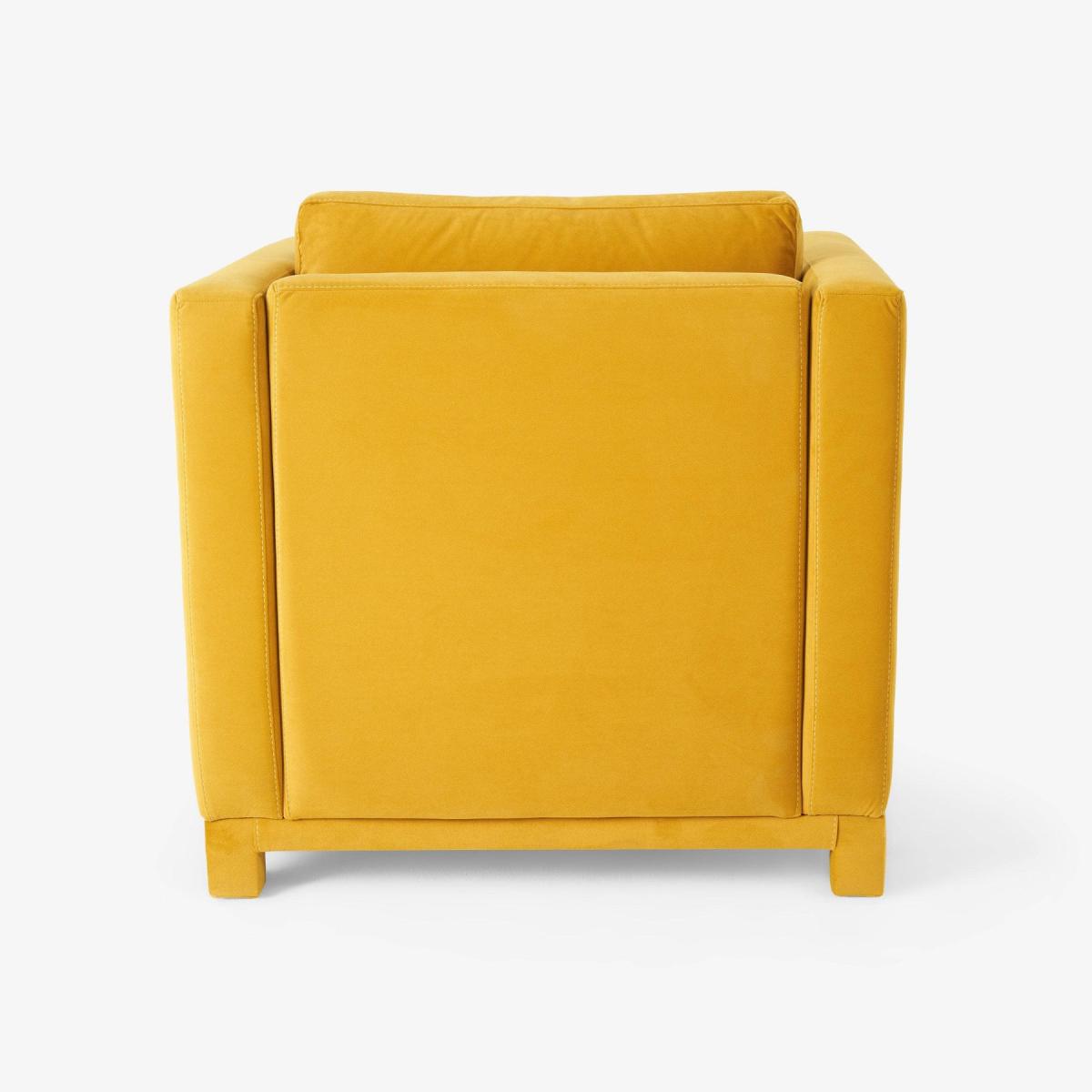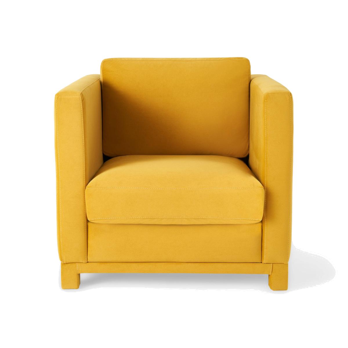 Our inviting Walter armchair is the ideal place to unwind in a world of comfort, echoing a blend of art deco style and 1970s glamour and ready to transport you to a haven of comfort. Upholstered in joyful yellow velvet, it captures the design sensibility and feeling of a luxurious members-only club. The calming aesthetic of Walter's spacious dimensions is enhanced by its deep seating and plush cushions. Handcrafted in Turkey, this welcoming occasional chair is inspired by art deco glamour and reimagined for modern comfort. Pair it with the matching Walter yellow 3-seater sofa to complete the clubhouse look.