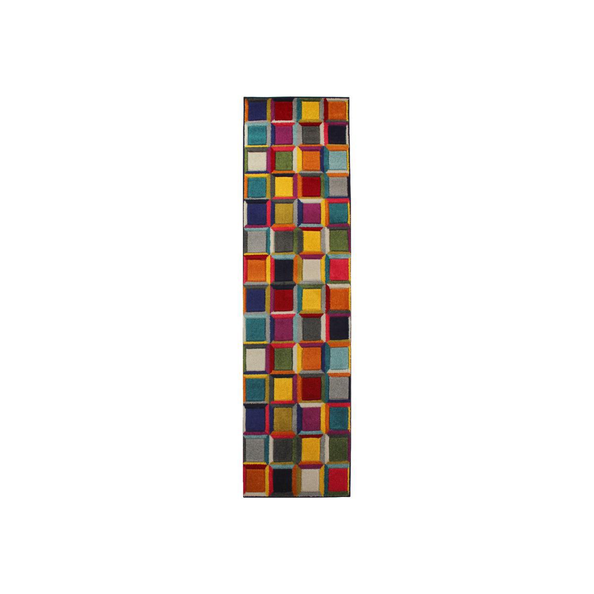 I particularly like how this bright runner brings energy without feeling too ‘busy’ - the mix of bold and muted blocks works equally well against plain walls or alongside more colourful décor. In a child’s bedroom or playroom it adds a clear zoned area for toys or a reading corner, and its low-pile construction makes it easy to hoover and spot-clean. To style it, keep larger furniture pieces (beds, toy chests, small tables) in natural woods or simple white so the colours really pop. Introduce cushions or storage boxes in one or two of the runner’s accent shades to tie everything together, and layer a super-soft sheepskin or faux fur rug at the end of a child’s bed for added comfort.