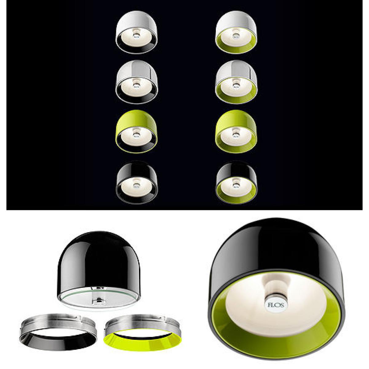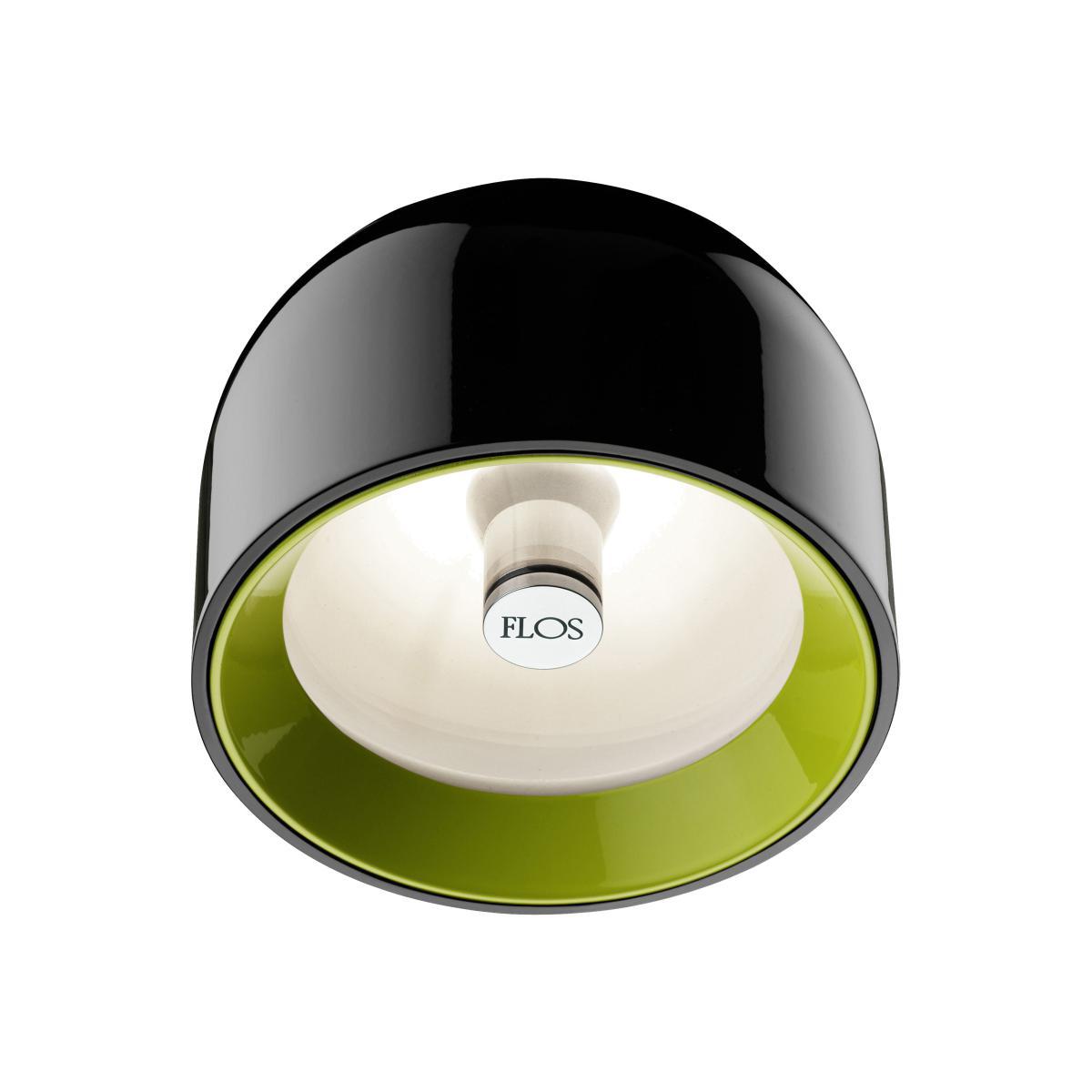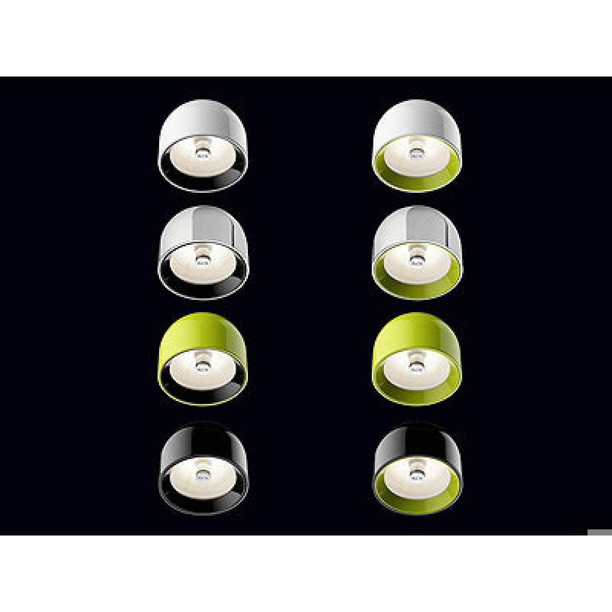 A very design minimalism : Wan is a small cupola made of aluminum in four different colors: chrome-plated finishing, brilliant white, green brilliant and black brilliant. Wall lamp or ceiling lamp for a direct light, she get a dazzling sight screen. Presented in aligned composition, she getr a strong decorative value and characterizes the piece of his original light.