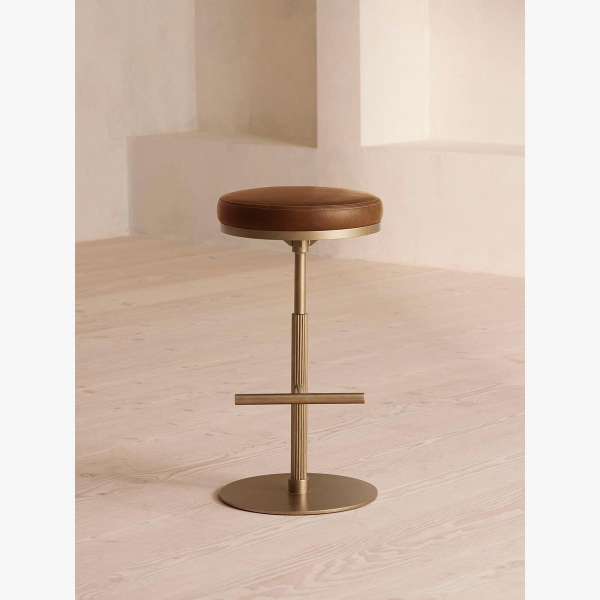 I love how this chestnut stool brings tactile warmth without feeling bulky - the smooth leather seat and slim brass-tone base strike a neat balance between industrial and Scandi styles. The adjustable height and footrest make it practical for both kitchen islands and home bars, while the rich leather ages well over time. Pair it with pale oak counters or a charcoal-toned countertop for contrast, and introduce soft textiles nearby (think a woollen throw over a dining bench) to tie in the cosy feel. A cluster of three evenly spaced along a breakfast bar keeps the look streamlined.