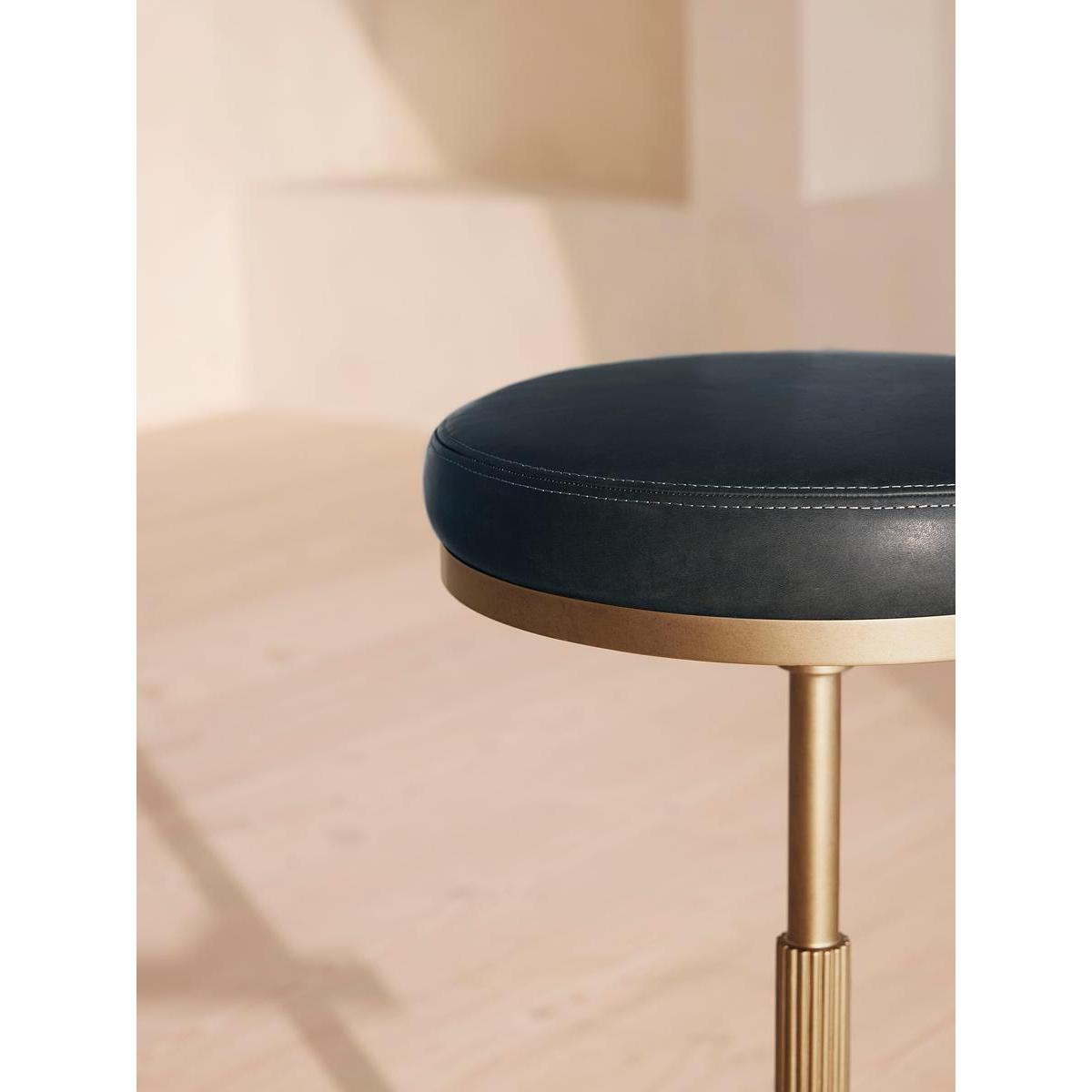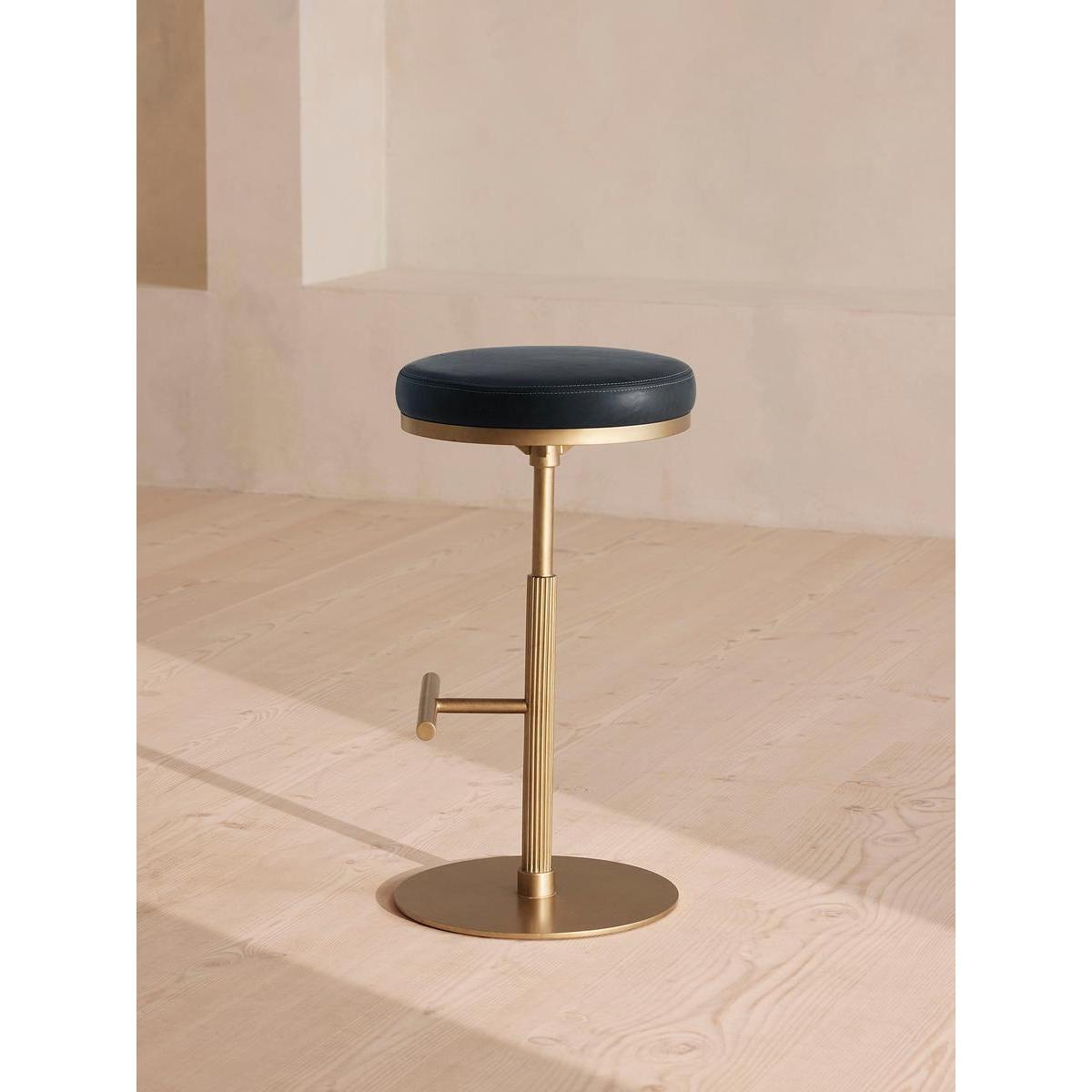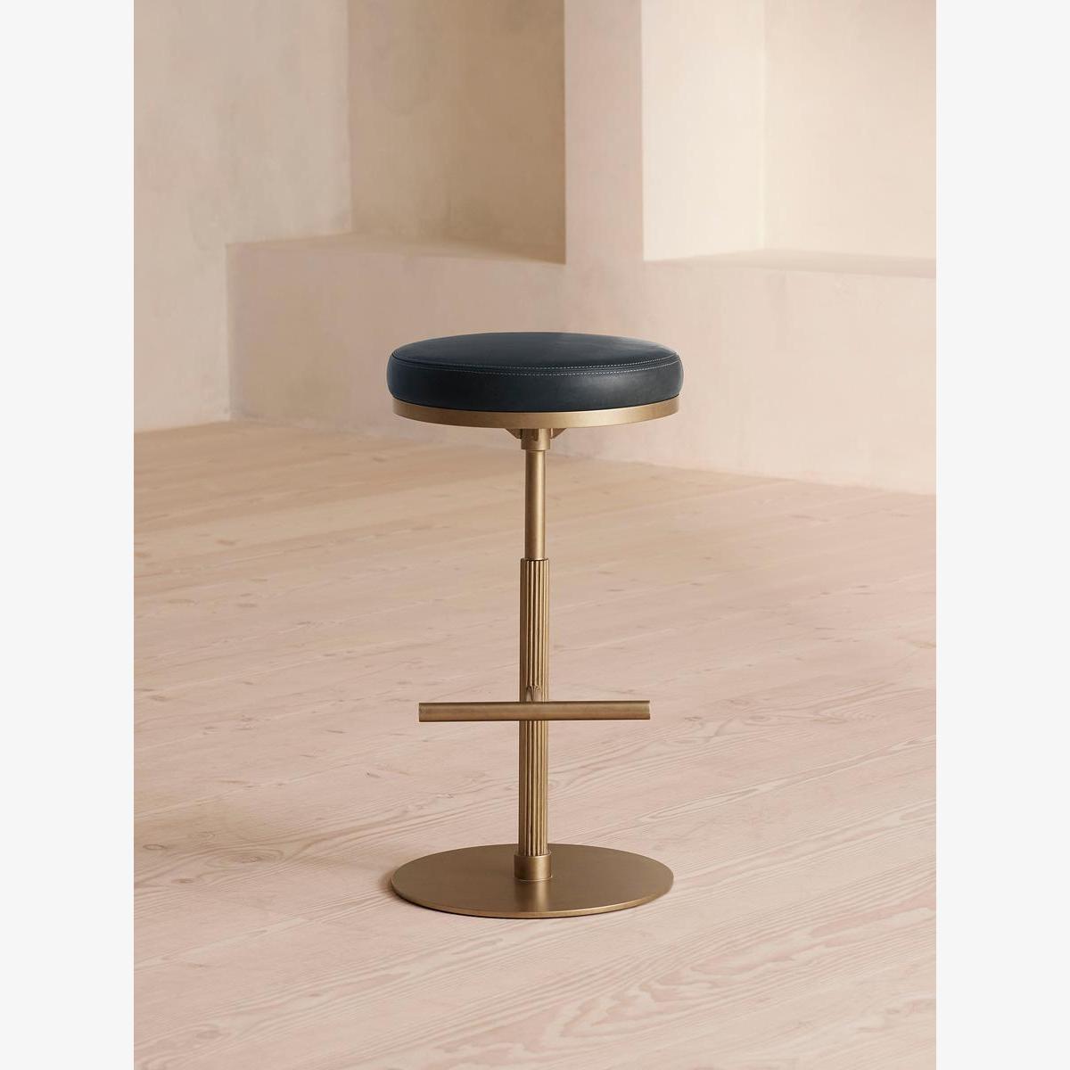 I’m a big fan of this sapphire-leather counter stool for its clean lines and solid brass base - it adds a touch of polish without feeling fussy. The round seat and simple footrest suit modern kitchens, home bars or even a compact breakfast nook, especially against pale timber floors or marble countertops. To style, keep nearby surfaces uncluttered and introduce a few metallic accents in warm tones - think brass pendant lights or copper mugs - to echo the stool’s finish. Its adjustable height means it works under most counters, and pairing two or three in a row instantly elevates a casual island into a considered seating area.