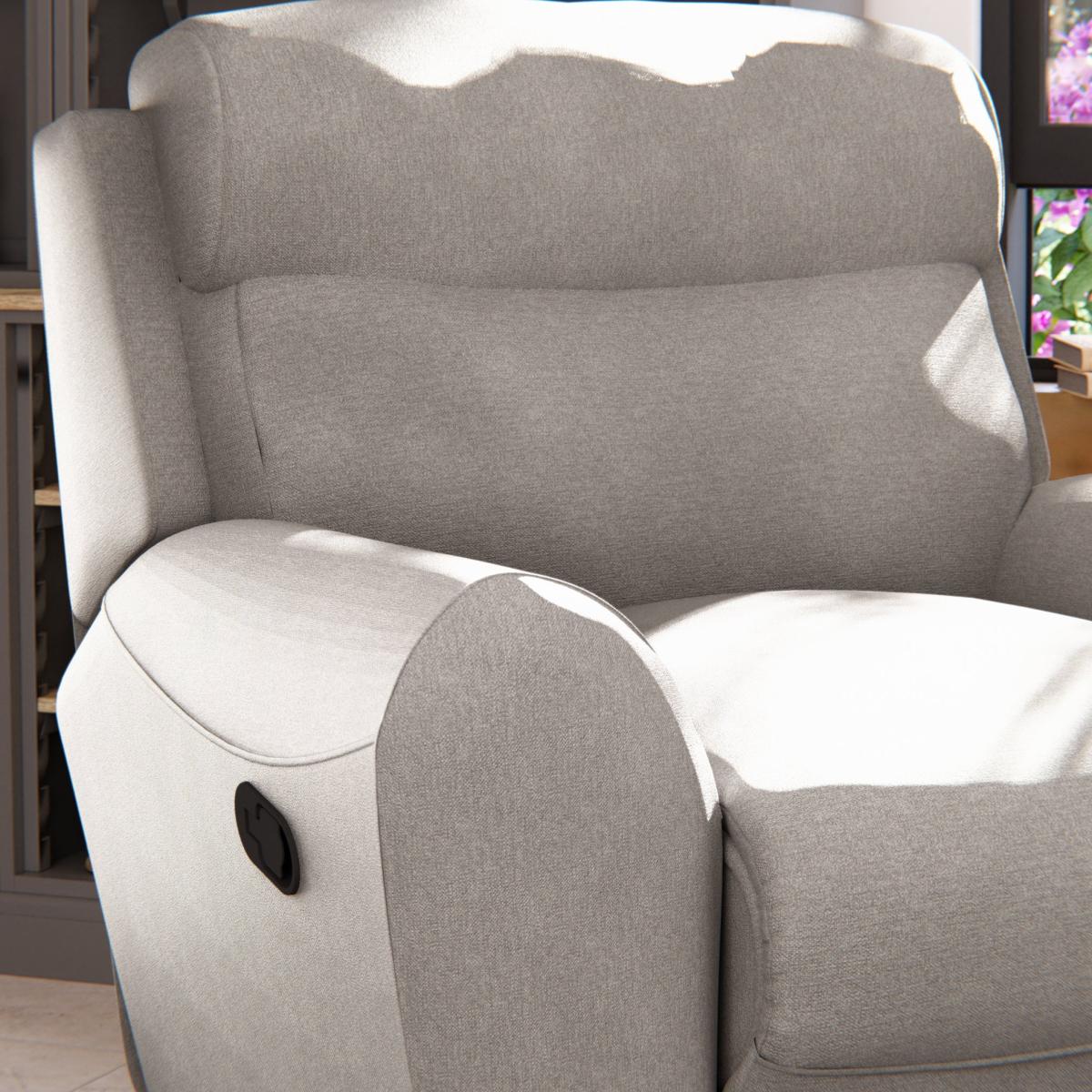 This armchair boasts soft and durable chenille fabric, combining style and longevity. The fixed cushions make upkeep a breeze, and the high back cushions with soft padding offer exceptional support without compromising on comfort. Arm pads provide an extra layer of coziness, and the tufted detailing on the back cushions and footboard adds a touch of sophistication to your home decor. With manual controls for reclining, you have the freedom to find your perfect lounging position.
