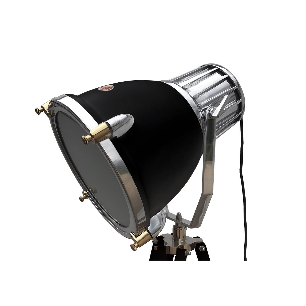 This wonderfully detailed tripod floor lamp brings home on-trend industrial style on a grand scale. A satisfying combination of wood, metal and glass, it’s striking and stylish. Why you'll love it. This strikingly large retro-look tripod floor lamp is sure to impress. Industrial style on an industrial scale. Natural wood tripod base. Spotlight-style light provided by a frosted glass diffuser. Choose black or white aluminium shade. Nicely finished with chunky chrome and brass accents. Head rotates and can be adjusted to direct light up and down. Handcrafted. This floor lamp is part of the Furniture Village accessories collection. What you need to know. Base is made of brass, acacia wood, steel, aluminium and glass. Brass, aluminium and glass shade. Floor switch. 300 cm cable. Requires 40W E27 bulb, not supplied. Dimensions. Height: 183 cm (73 in). Depth: 83 cm (33 in). Width: 83 cm (33 in).