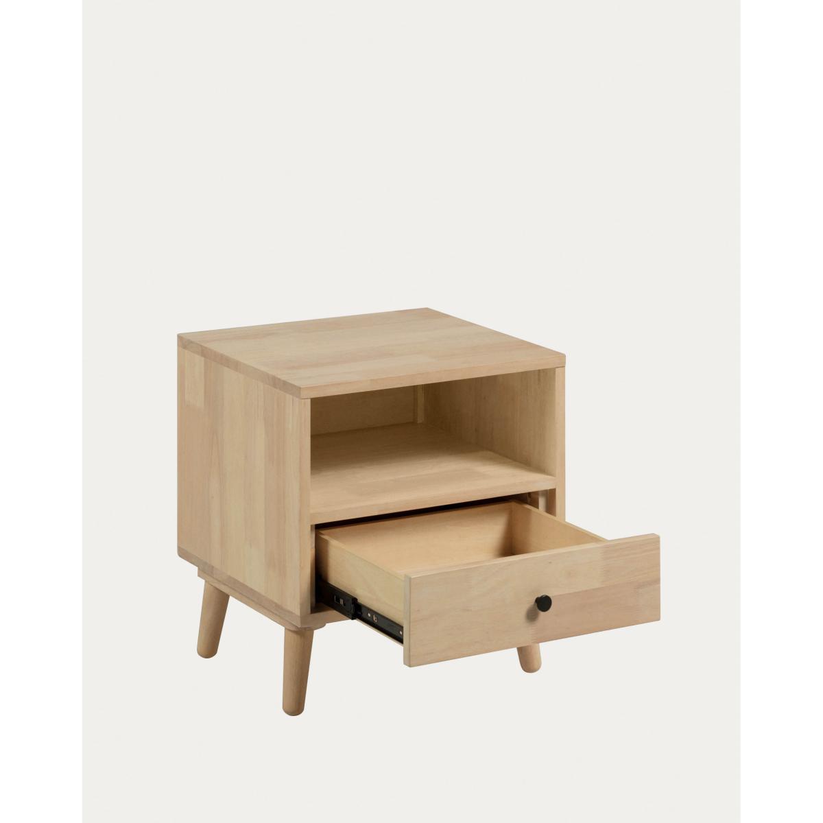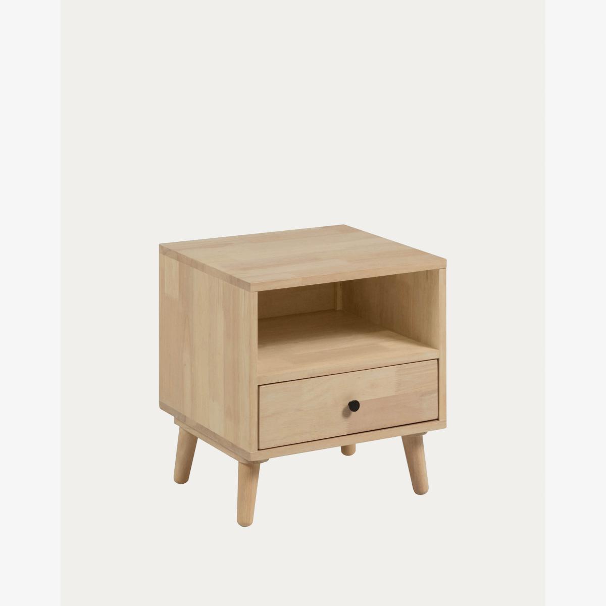 I love this bedside table because of its simple, compact design and natural timber finish, which makes it versatile across various interior styles. It works particularly well in Scandinavian or minimalist schemes where clean lines and light woods are key, but it can also add warmth to eclectic or boho bedrooms. Practical styling tips include topping it with a small lamp, a minimal vase, or favourite books - just keep the surface uncluttered for a tidy look. The drawer offers handy storage for essentials, helping keep your space organised without sacrificing style.
