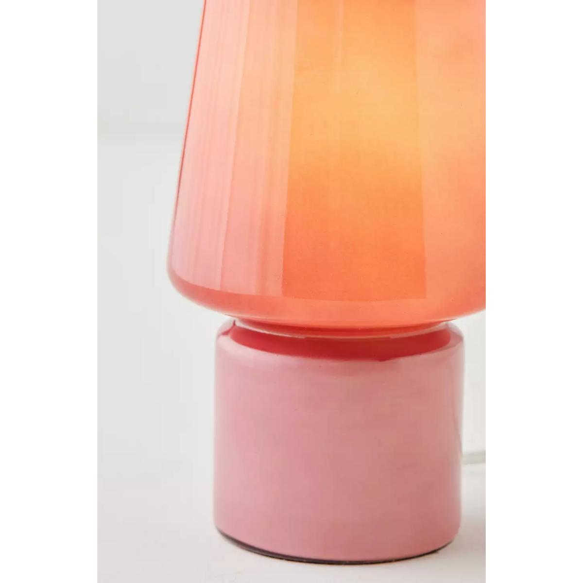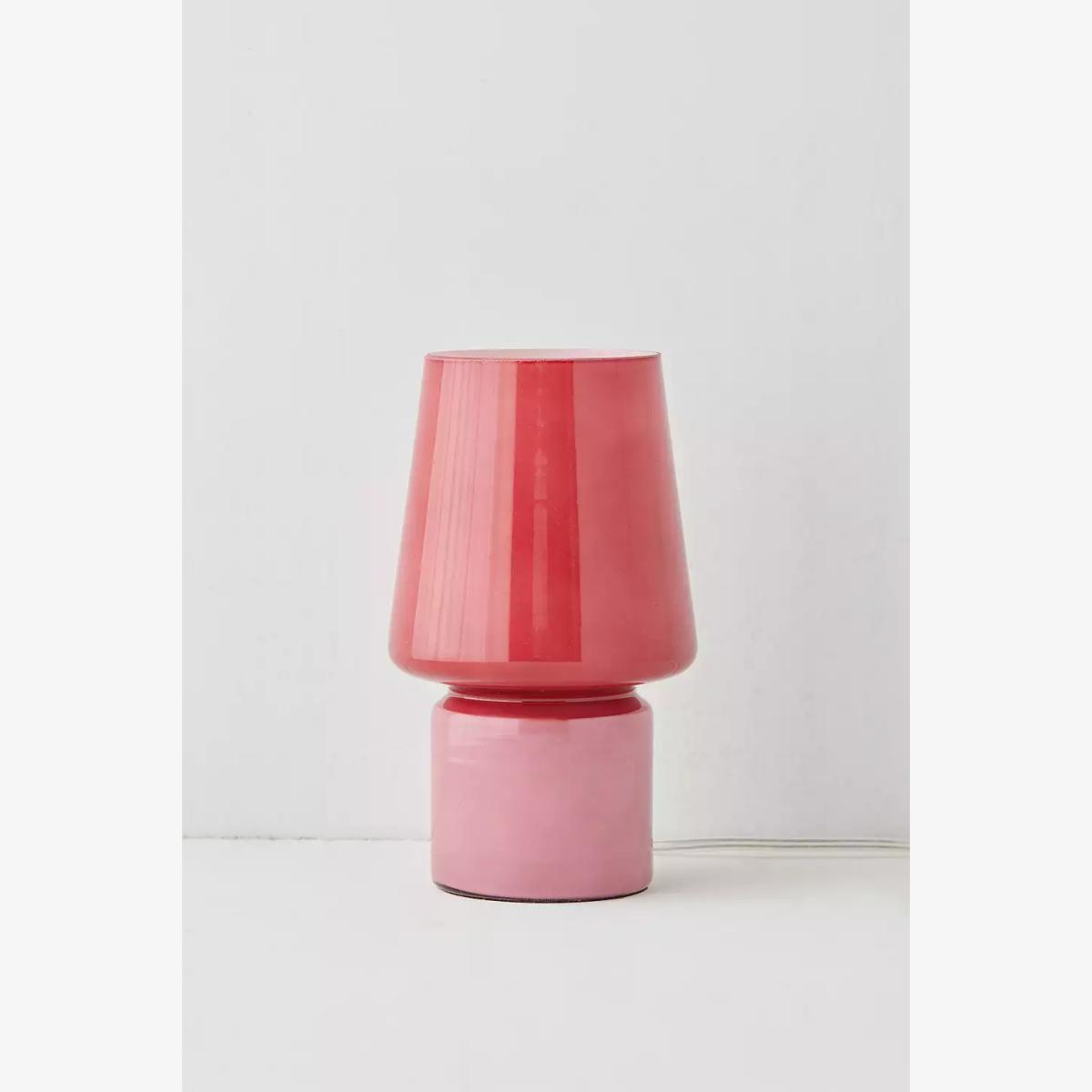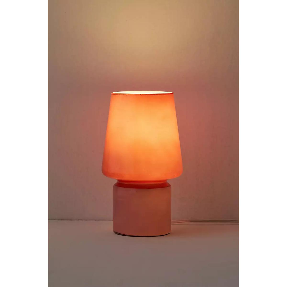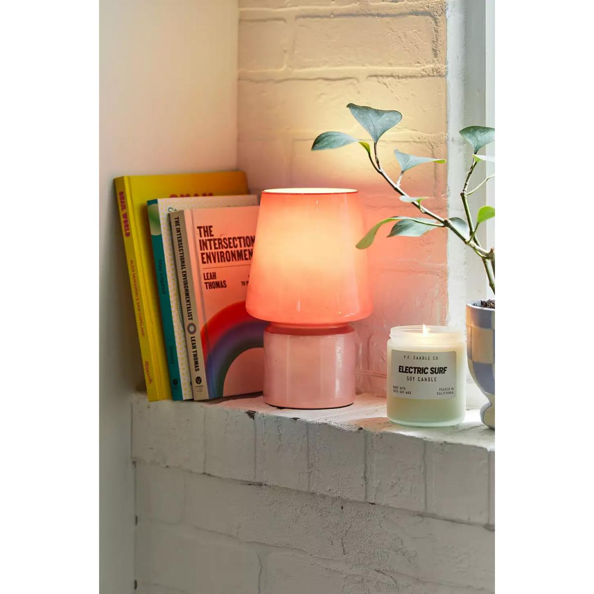 Small table lamp in a translucent glass construction, complete with curved edges, an open-top silhouette and an overall ribbed design. Frosty glass lamp emits a warm glow when turned on, perfect for adding to your bedside table or bookshelf. Simply plug in to power on. **Content + Care** \- Glass \- Wipe clean \- Includes a UK plug \- Requires one E26 25W bulb or 5W LED bulb (not included) **Size** \- Dimensions:Dia: 12.4cm x H: 21cm \- Cord length: 213cm \- Weight: 1.43 lbs \- Shipping package dimensions: L: 15cm x W: 15cm x H: 23cm \- Shipping package weight: 1.65 lbs