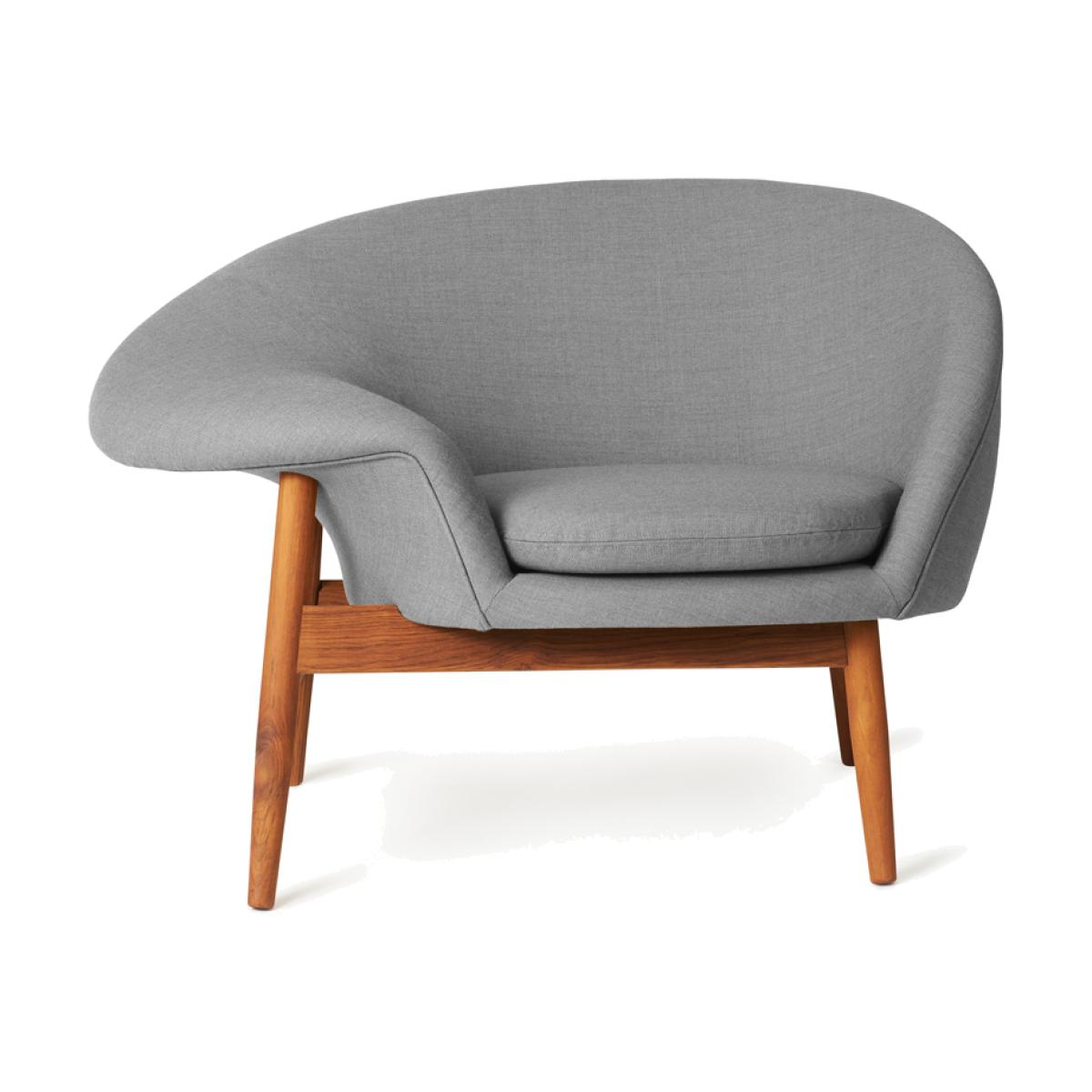 Warm Nordic Fried Egg armchair Fabric canvas 134 grey melange oiled teak legs