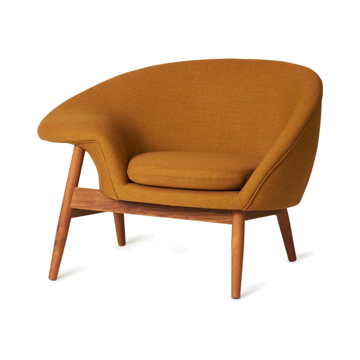 Warm Nordic Fried Egg armchair Fabric canvas 424 dark ochre oiled teak legs