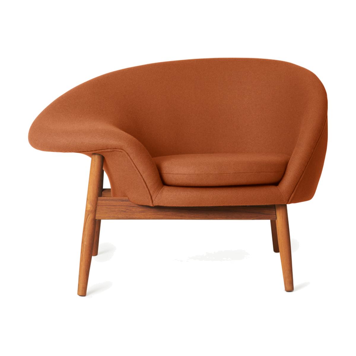 Warm Nordic Fried Egg armchair Fabric hero 481 caramel oiled teak legs