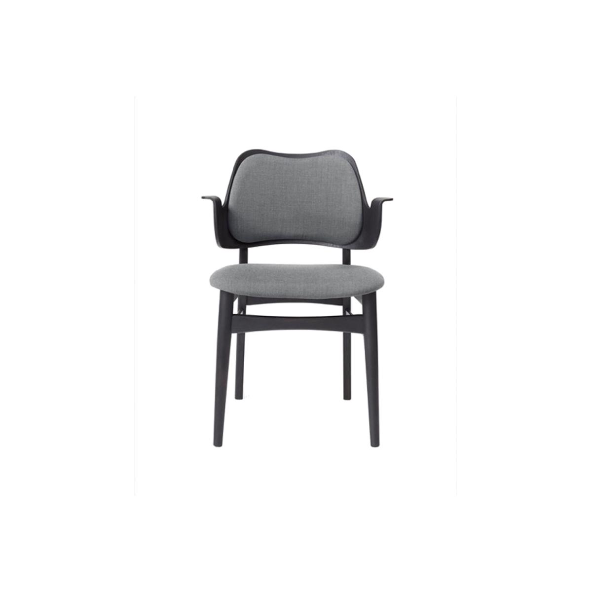 Warm Nordic Gesture chair upholstered seat and back Fabric canvas 134 grey melange black lacquered beech legs upholstered seat upholstered back